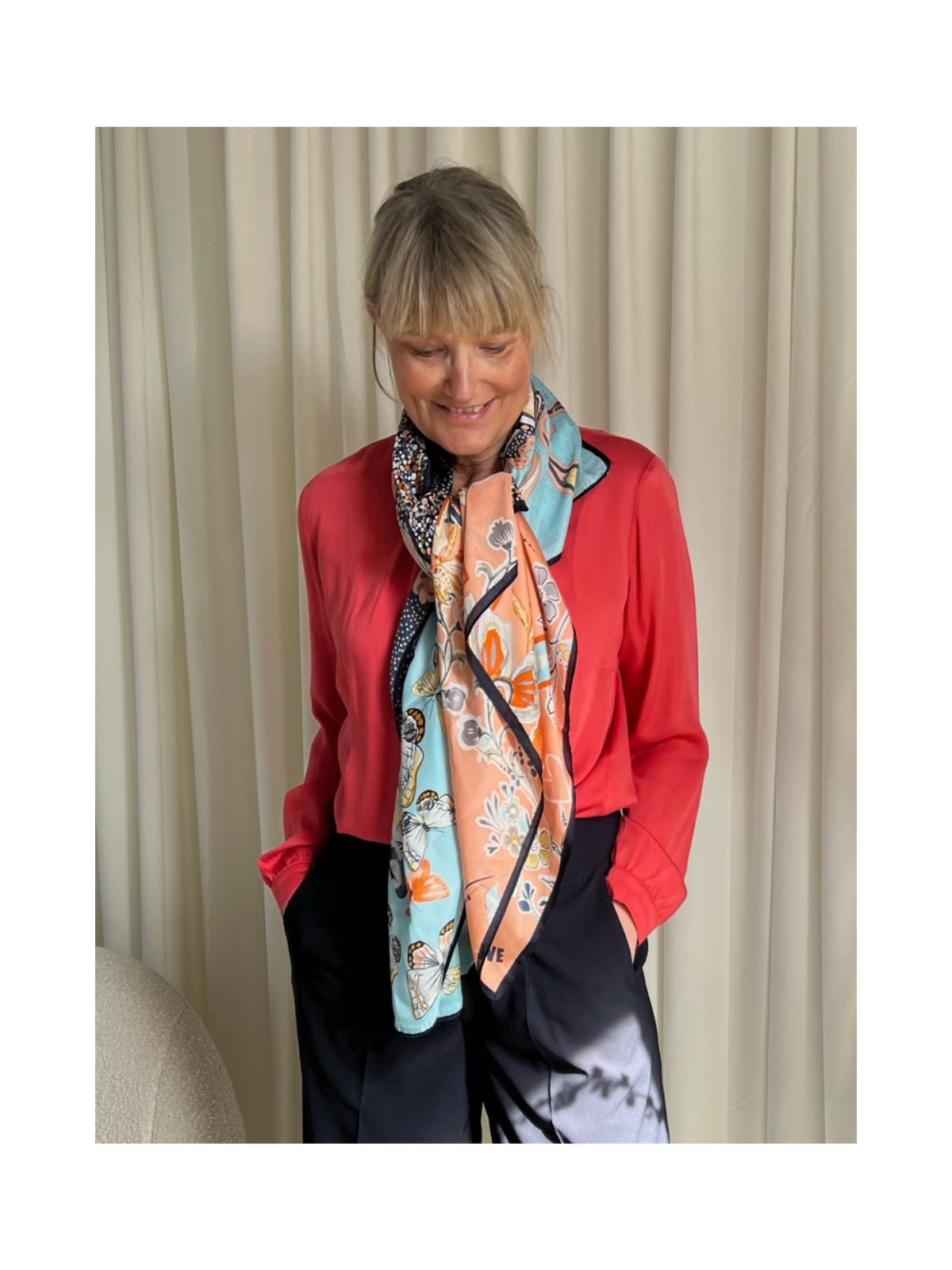 - Den klassiske: Fold dit tørklæde i en trekant og bind det løst omkring din hals, så spidserne hænger ned foran. Denne stil er tidløs og giver et elegant touch til både hverdag og fest.