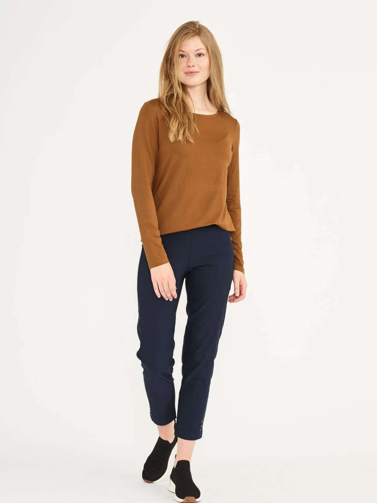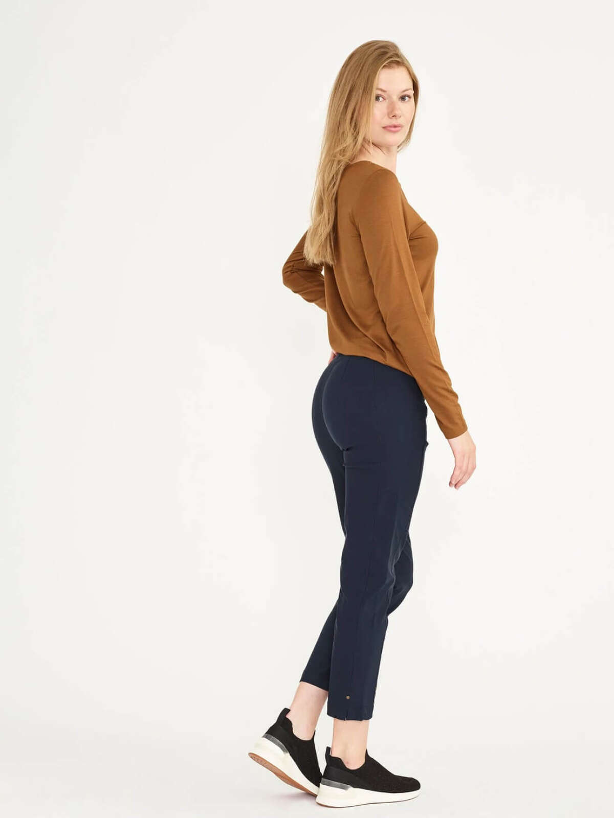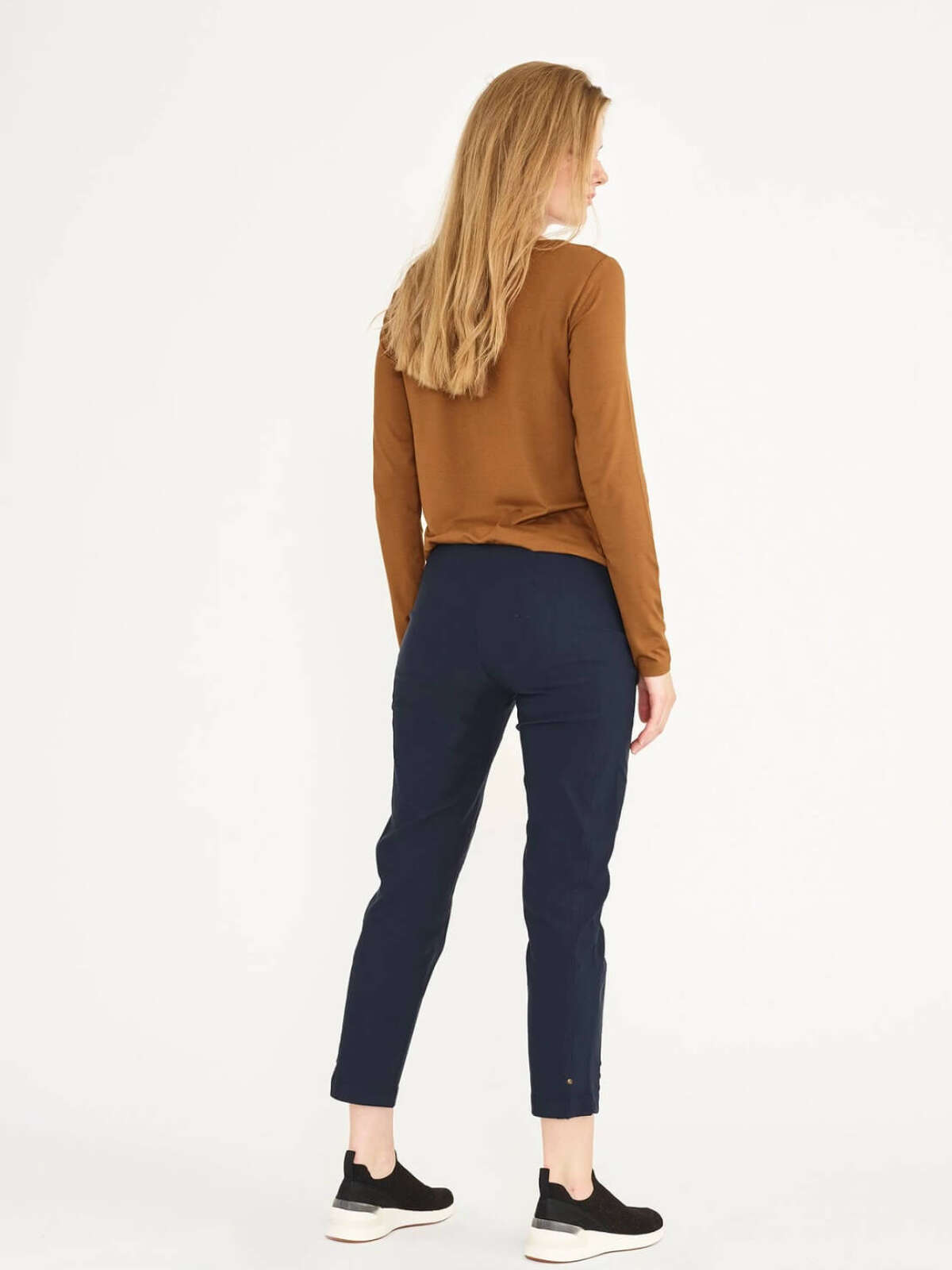 Smart ROSE buks fra LauRie i regulær design med slank lårvidde og ankellang længde. Buksen har en behagelig pasform, hverken for stram eller løs.Buksen har elastisk talje samt nitte effekt ved benvidde forneden.