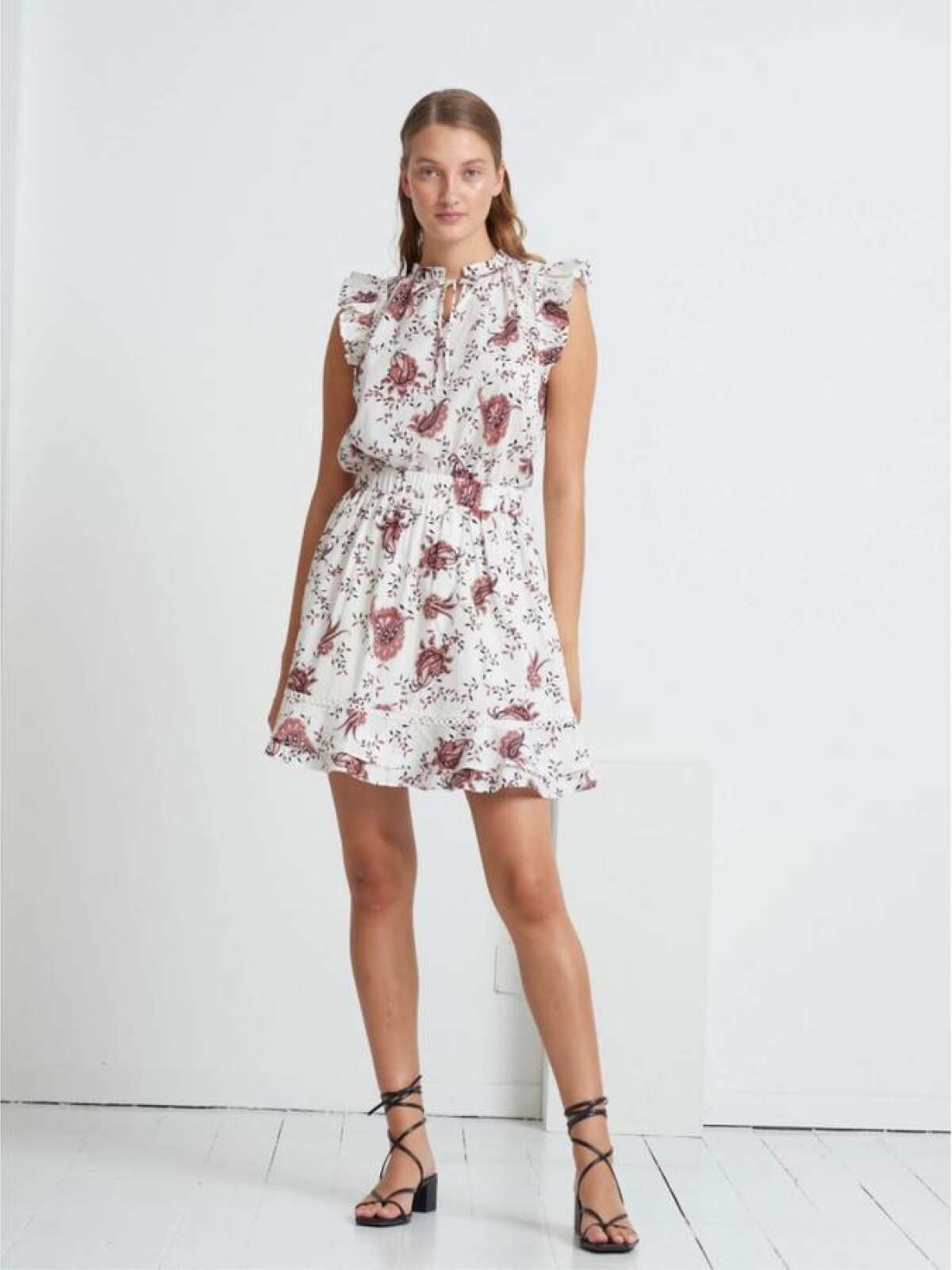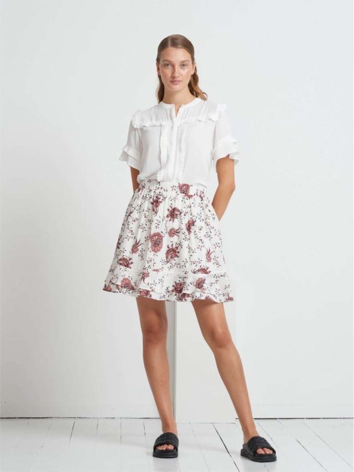 Fin blomstret nederdel med bånd i nederste søm samt flæser.Modellen er 176 cm høj og iført størrelse 36.