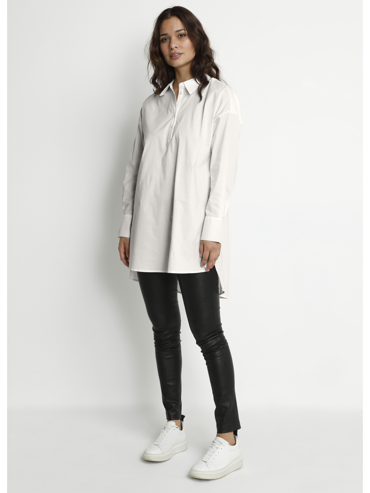 Lækker Antoinett skjorte fra Culture med klassisk krave og lange ærmer.Skjorten er en smule længere bagpå og har knapper ved brystet samt bagpå.