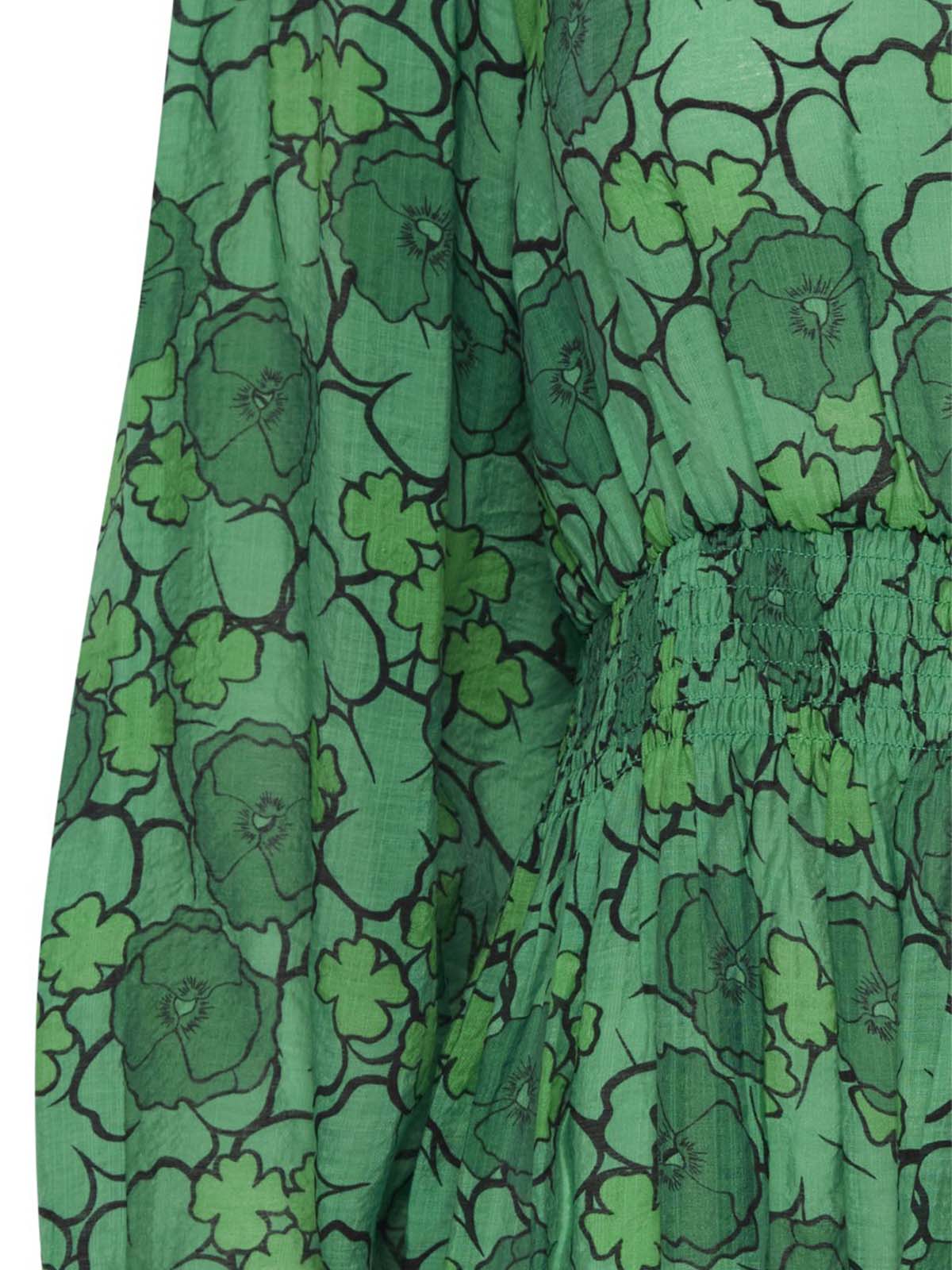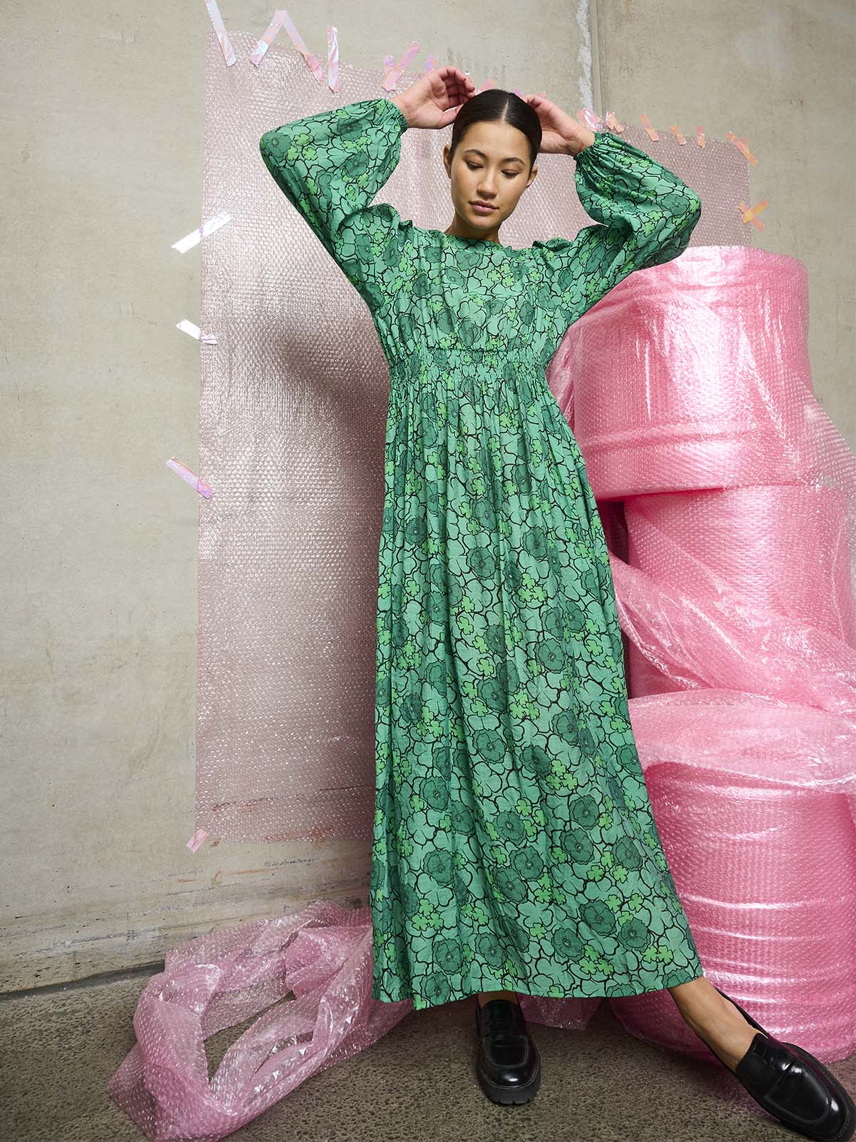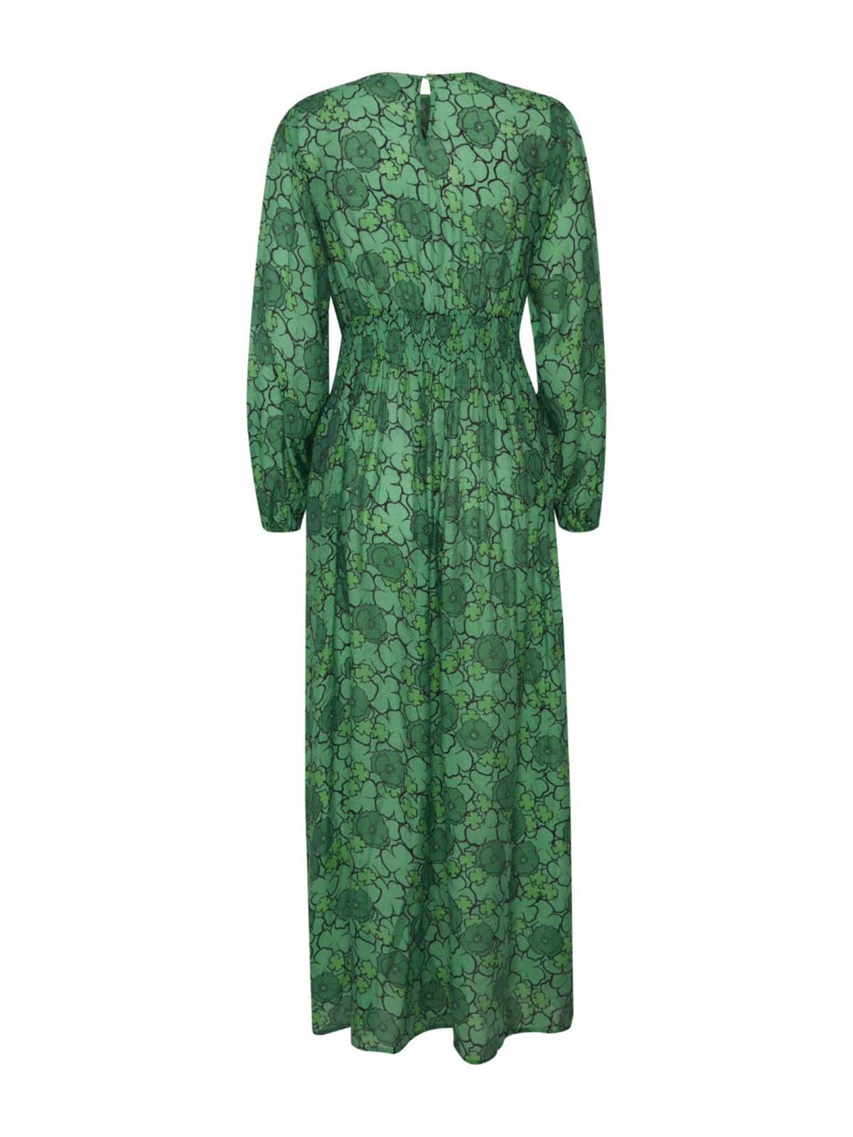 Clova kjole fra ICHI.Maxikjole med rund hals, lange ærmer med elastik kant og smock detalje i taljen.