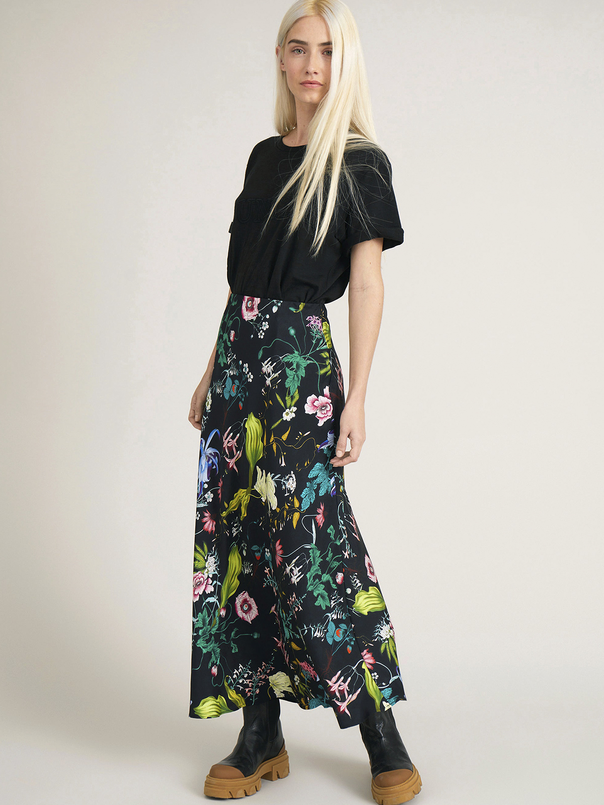Carson nederdelen fra MUNTHE er en flot elegant nederdel med skjult elastik i taljen.Nederdelen er lang.