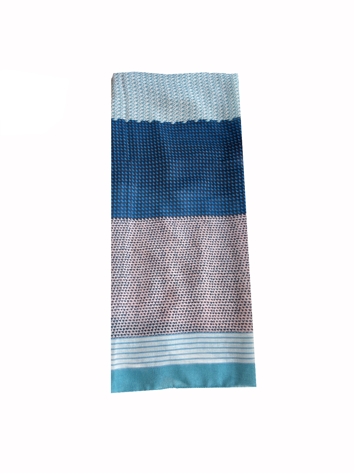 Flot tørklæde fra Bæltekompagniet i blå nuancer med små flæser i kanterne.Mål: ca 86x180 cm