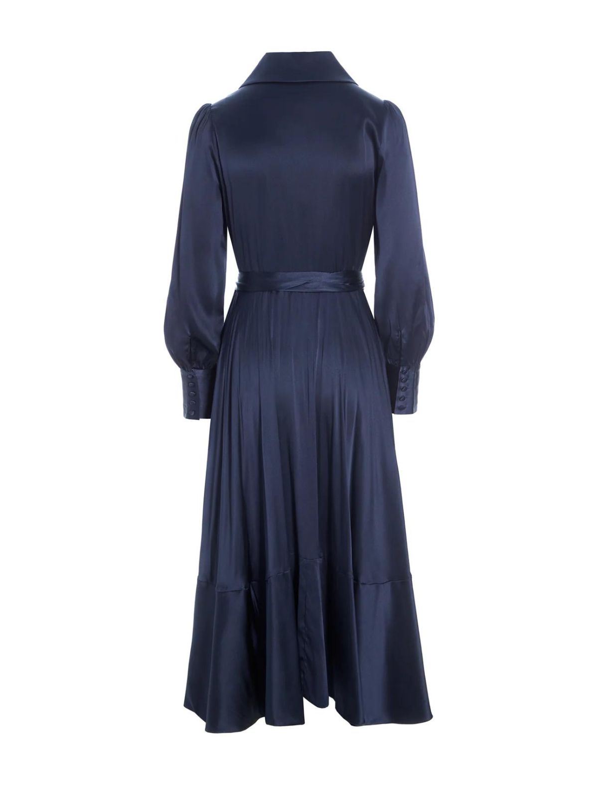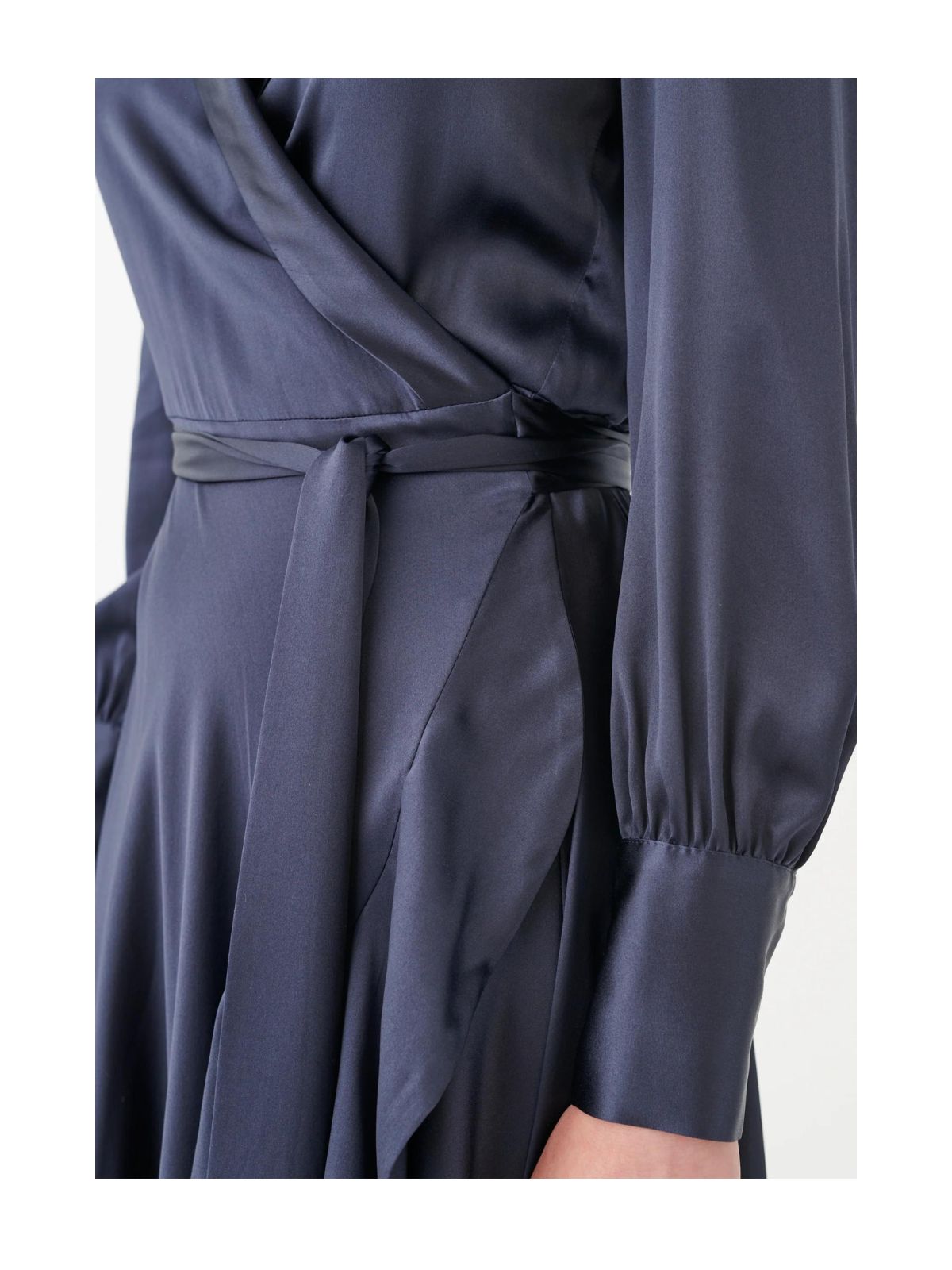 Smuk slå-om kjole fra Dea Kudibal. Kjolen fremhæver den kvindelige figur på smukkeste vis når den bliver bundet om livet. Den har en længde til læggen og en elegant krave.Materiale: Stretch silke satin - 90% Silke, 10% Elastan