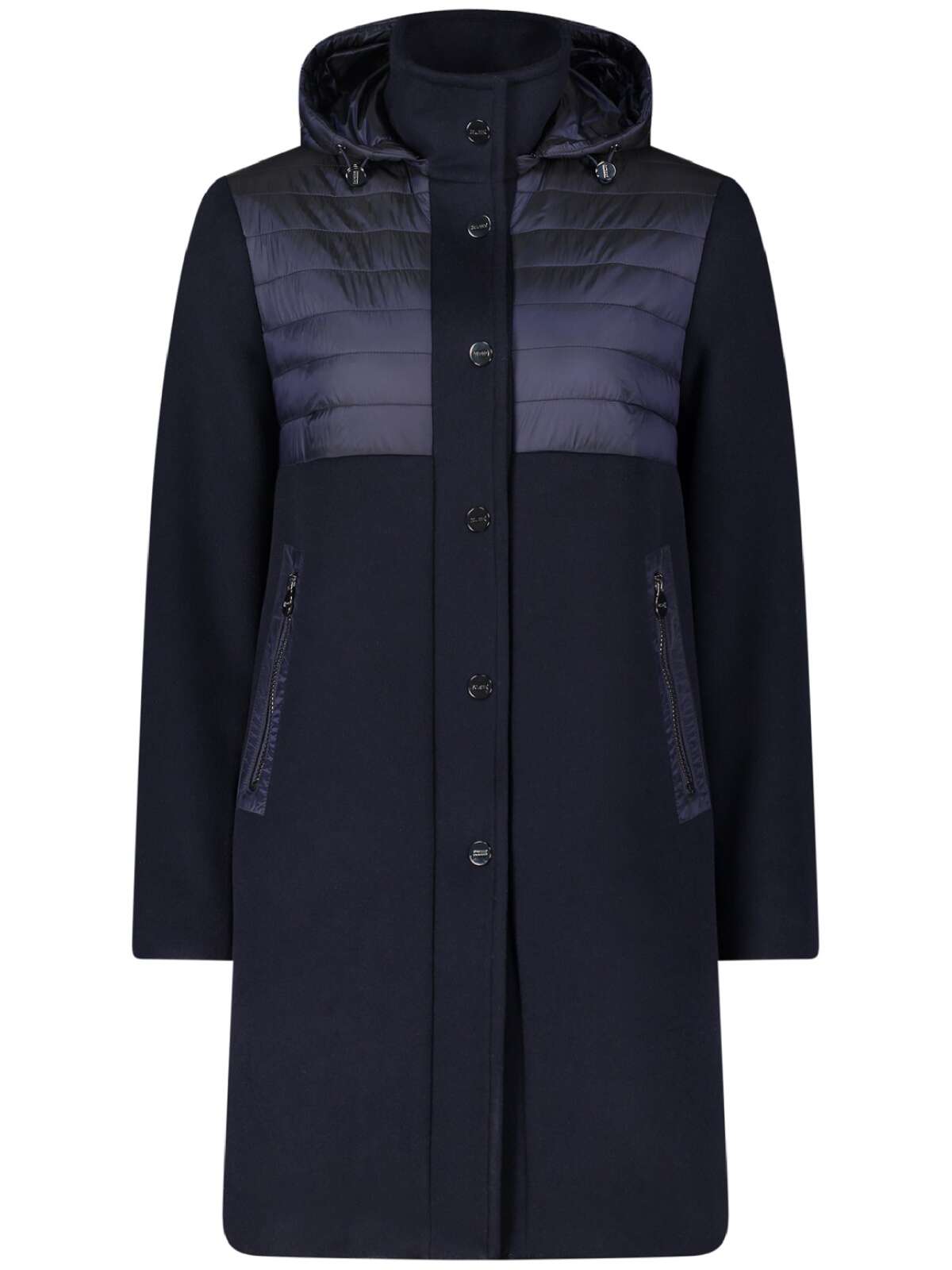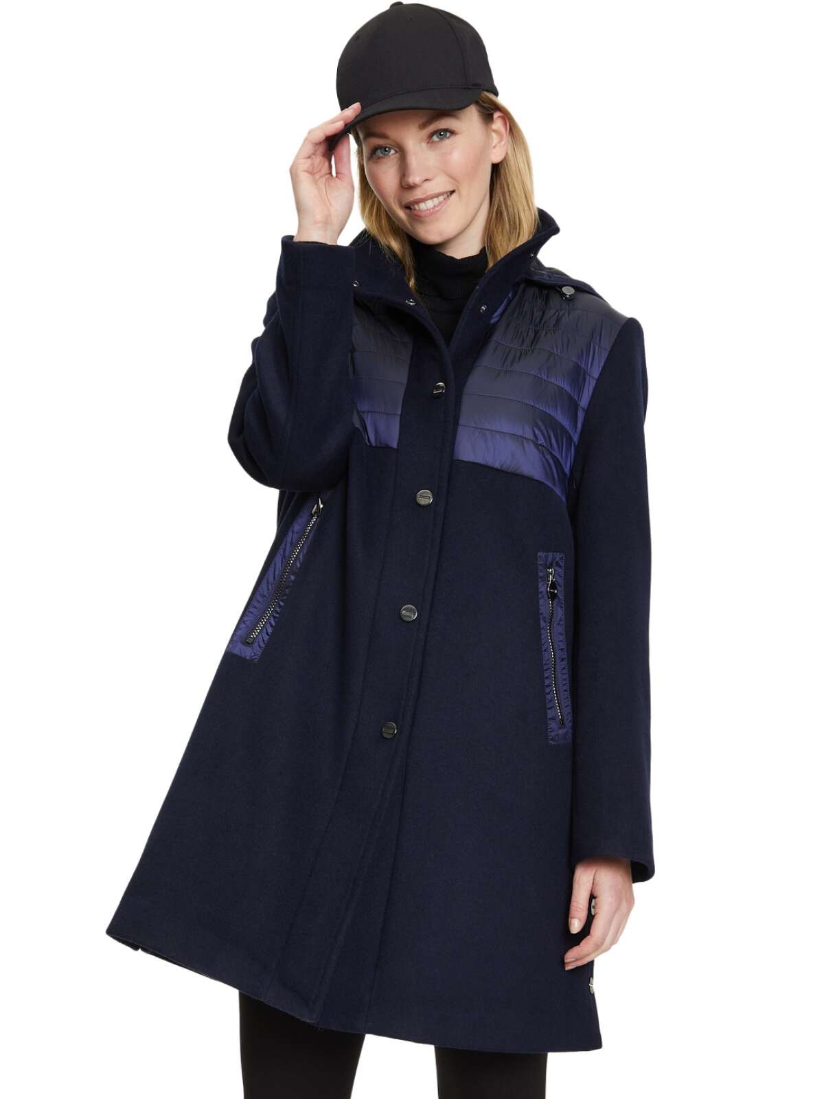Elegant sporty ulden jakke fra Betty Barclay i smart vatteret A-Line design med quiltet hætte samt for og bag på bærestykke. Jakken har trykknap lukning, stiklommer samt trykknap detalje i siderne.Sæson: Efterår / Vinter