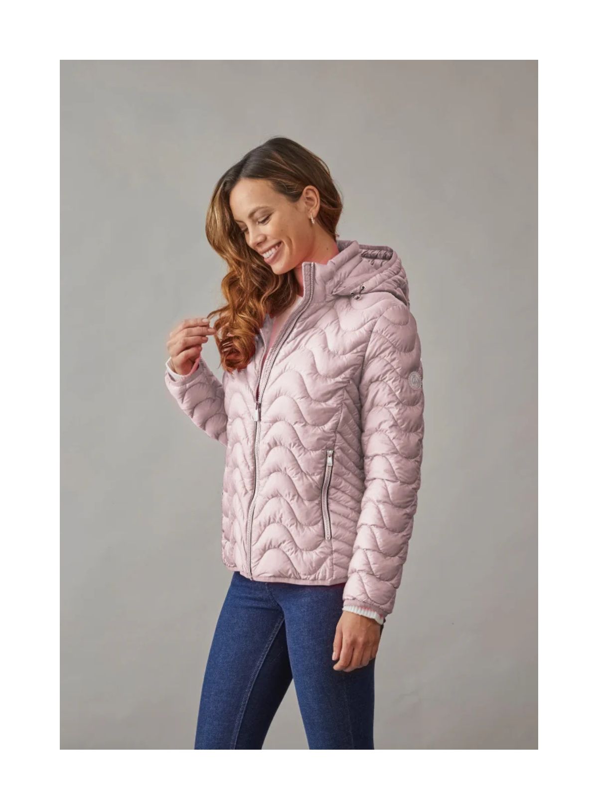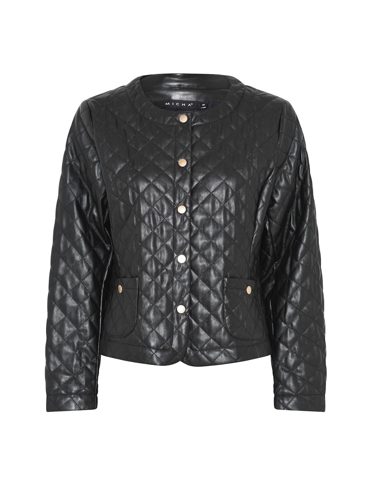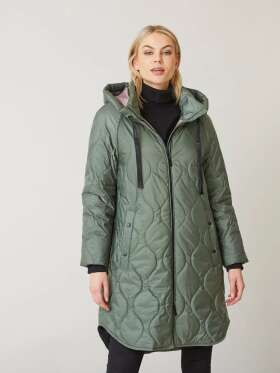 Fin quiltet jakke fra Micha. Jakken er med hætte, lommer foran, høj hals og lynlåslukning med tilhørende knaplukning. En perfekt jakke til efteråret.Materiale: 100% Polyester
