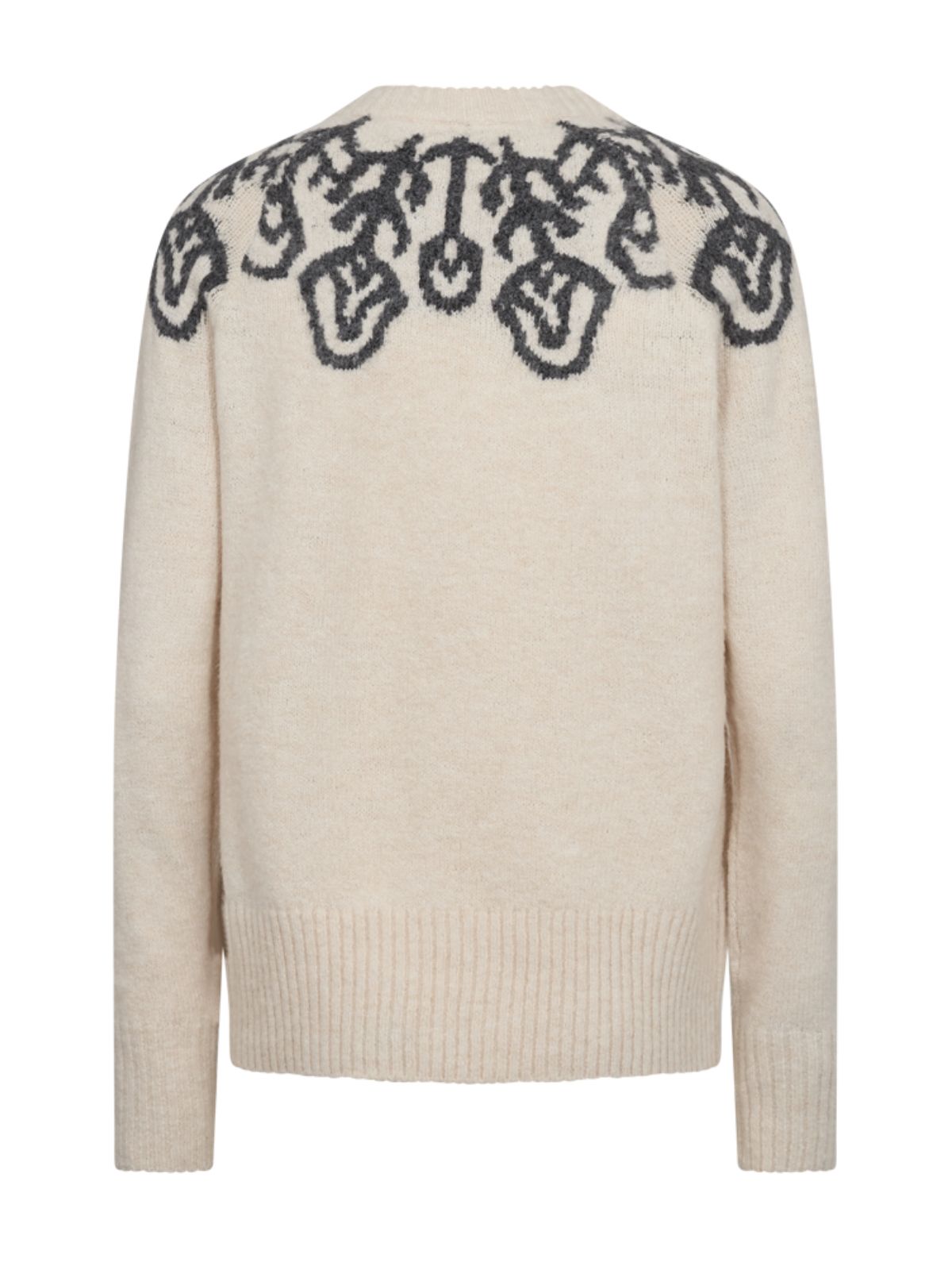 Strik med mønster fra Freequent. Strikken har en rund halsudskæring, lange ærmer og ribkant langs bunden, halsudskæringen og ved enden af ærmerne. Hold varmen i denne bløde strik på de kolde efterårs og vinter dage.Materiale: 65% Acrylic, 28% Polyester, 5% Alpaca, 2% Elastan