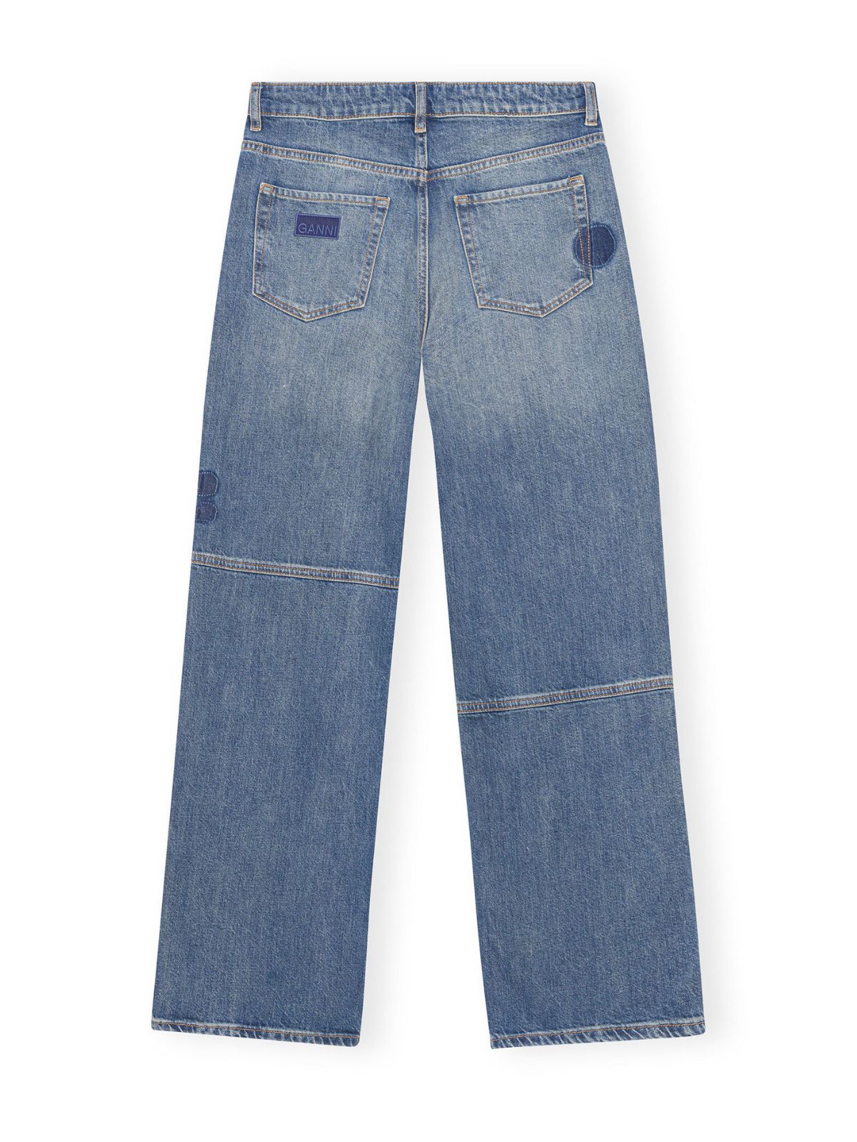 Smarte jeans med mellemhøj til lav talje fra Ganni. Buksen er designet i relaxed fit, har Ganni logo patches og løse ben. Style dem til din yndlings t-shirt for et smart afslappet look. Modellen er 174 cm høj og har en størrelse 27 på.Materiale: 100% Økologisk bomuld