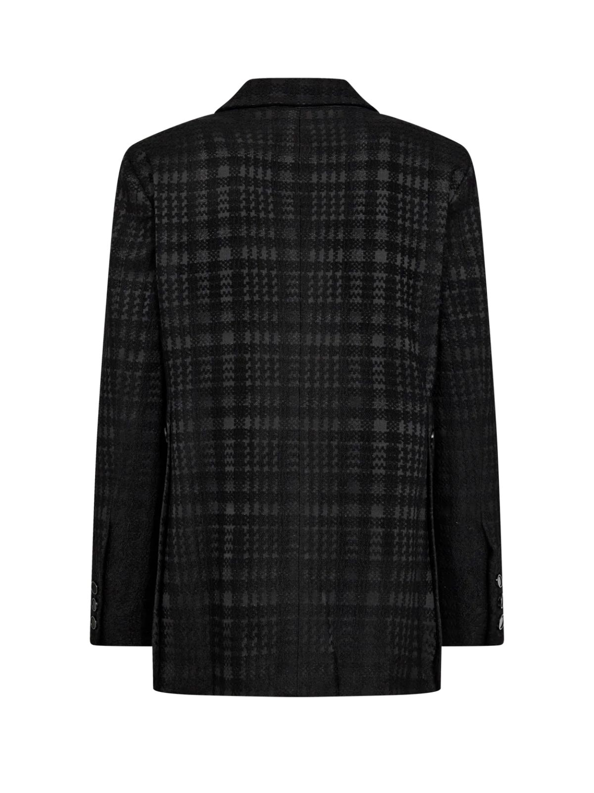 Elegant blazer fra Mos Mosh. Blazeren har en dobbeltradet lukning, brede revers, slids i sidesøm og fin glittrende effekt. Modellen har en størrelse 36 på.Materiale: 34% Polyester, 22% Bomuld, 37% Akryl, 6% Metal fibre, 1% Elastan | For: 100% Polyester
