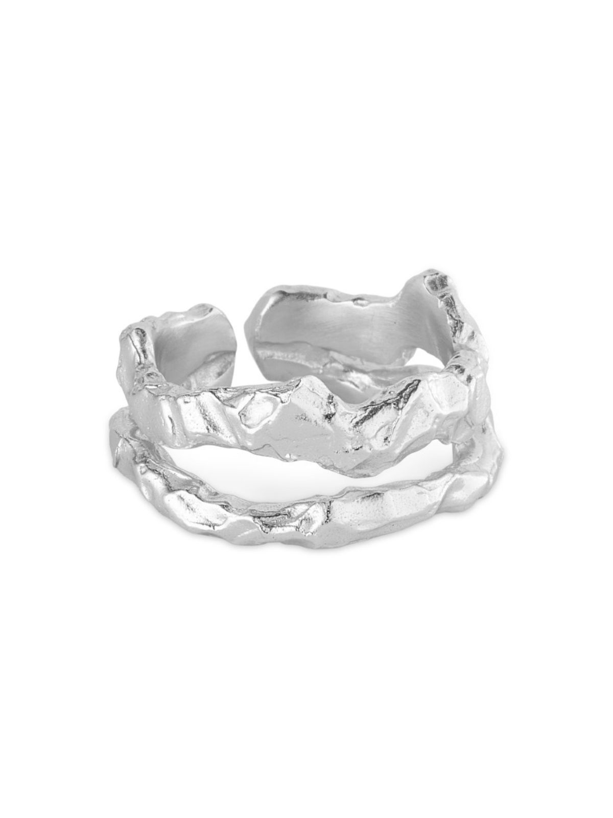 Cool ring i et rå design. Ringen er to ringe i en, hvor den ene er tynd og den anden er bred. Den tilføjer et cool touch til dit outfit.Materiale: Sølvbelagt