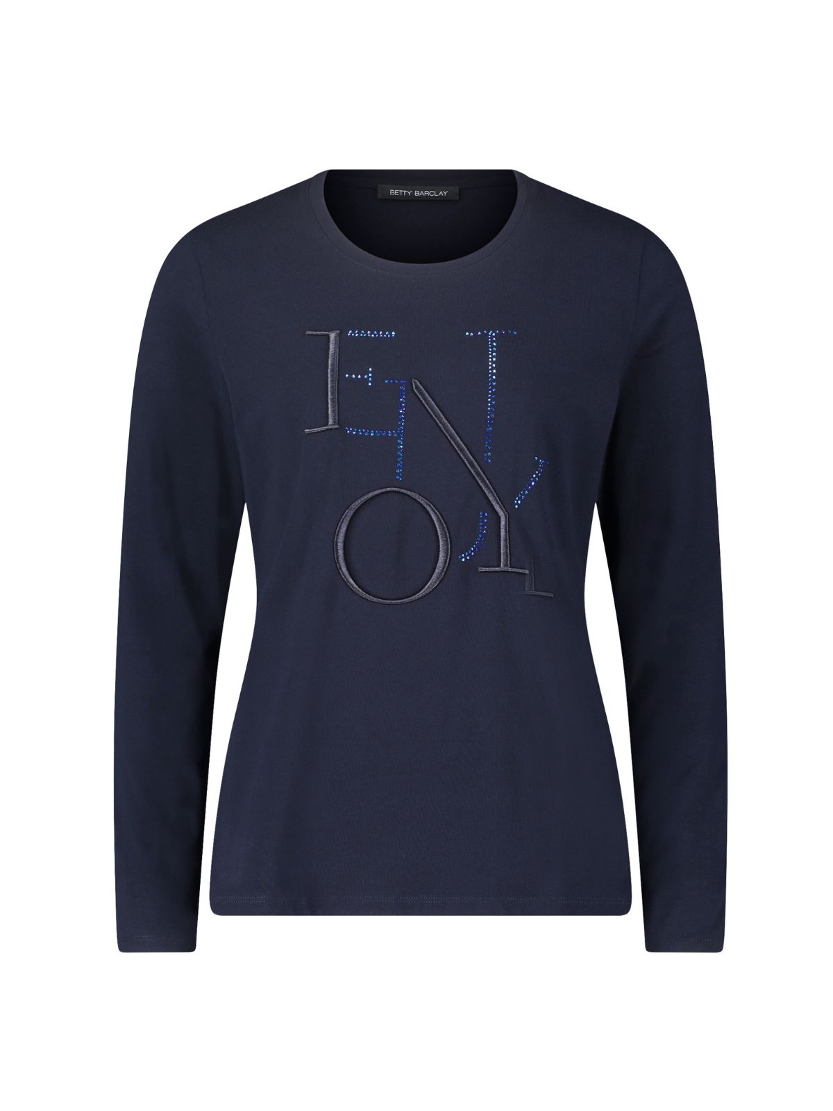 Feminin bluse fra Betty Barclay. Blusen har en rund hals, lange ærmer og regulært fit. På fronten har den dekorative sten og syninger. En sød hverdagsbluse.Materiale: 95% Bomuld, 5% Elastan