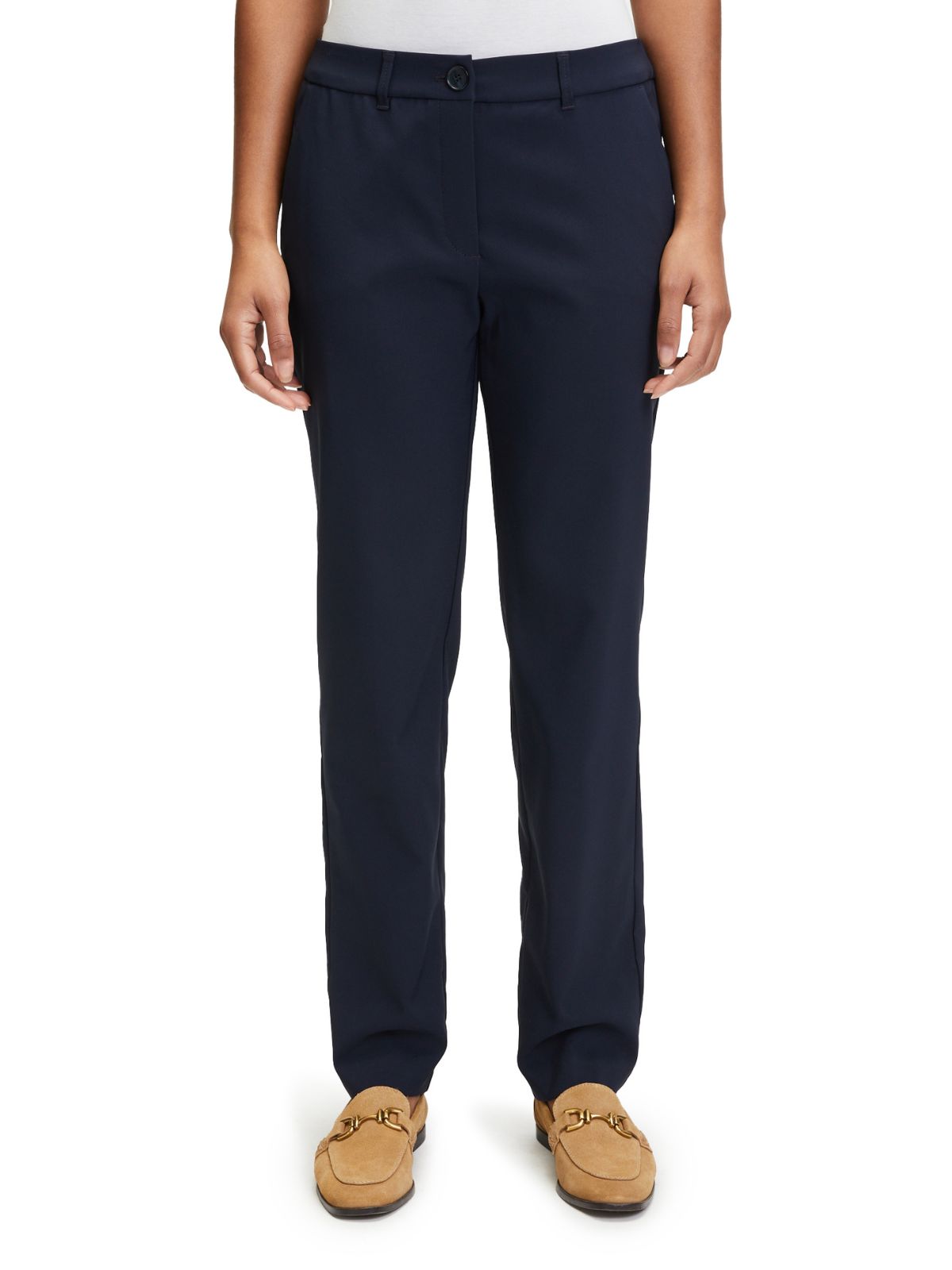Elegant buks fra Betty Barclay. Buksen har pressefold langs buksebenene, lommer i siden og lige ben. Style den sammen med en skjorte eller blazer for et sofistikeret look.Materiale: 86% Polyester, 14% Elastan