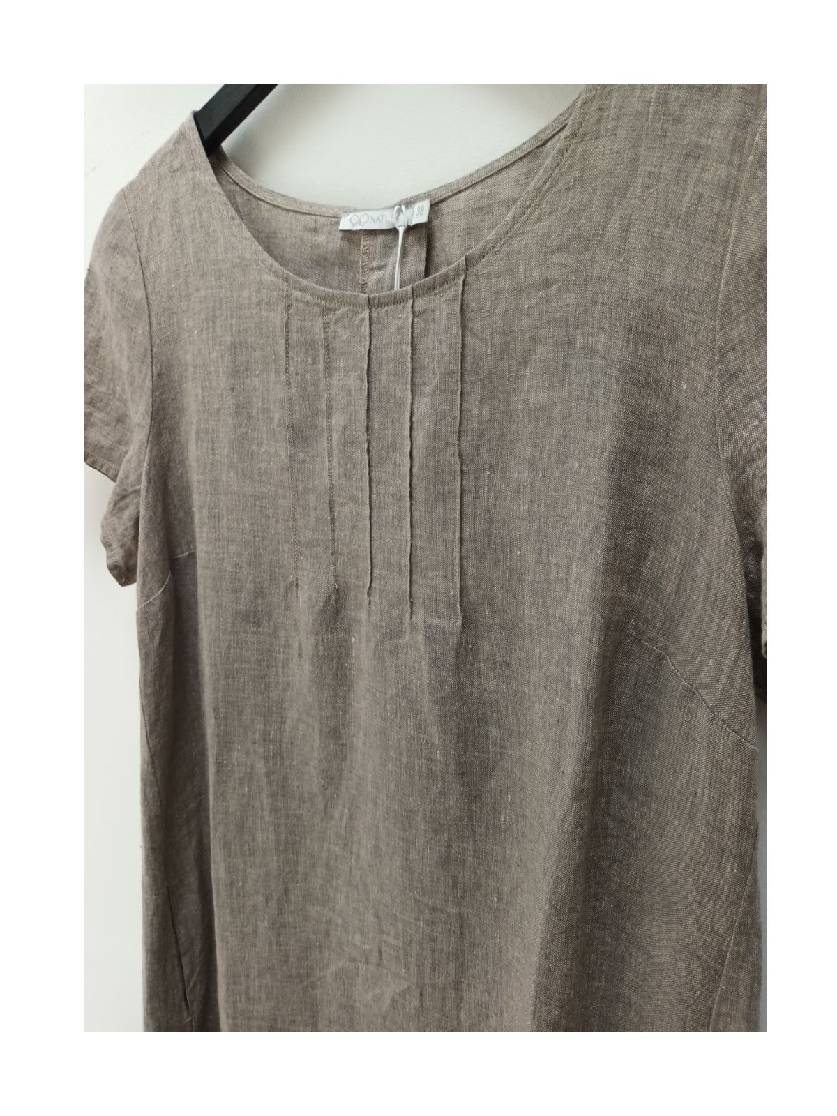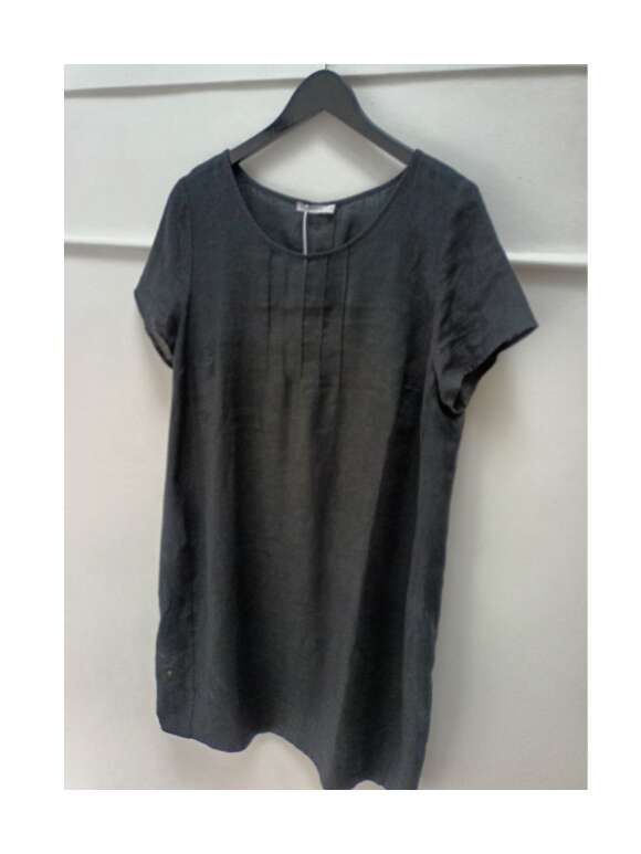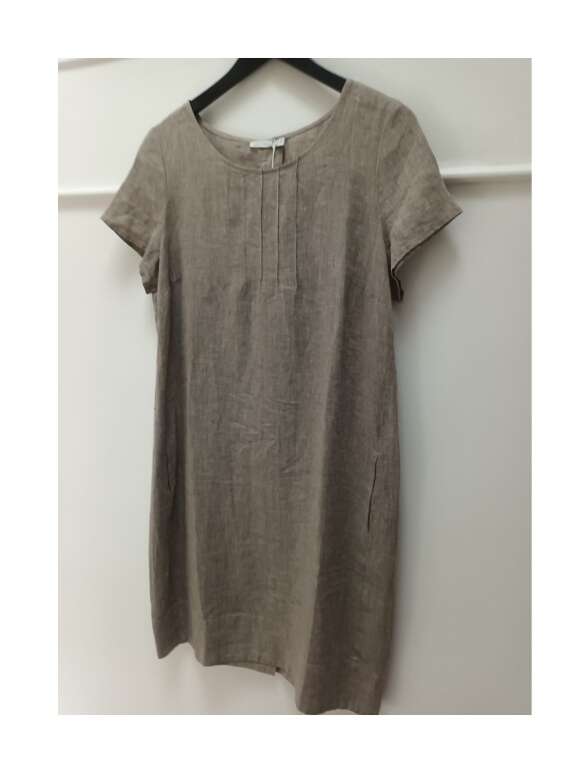 Skøn hør kjole fra GR Nature. Kjolen har en rund halsudskæring, korte ærmer og fine syningsdetaljer ved halsudskæringen samt lynlås i ryggen og stiklommer i sidesømmen.Pasform: Regulær pasform