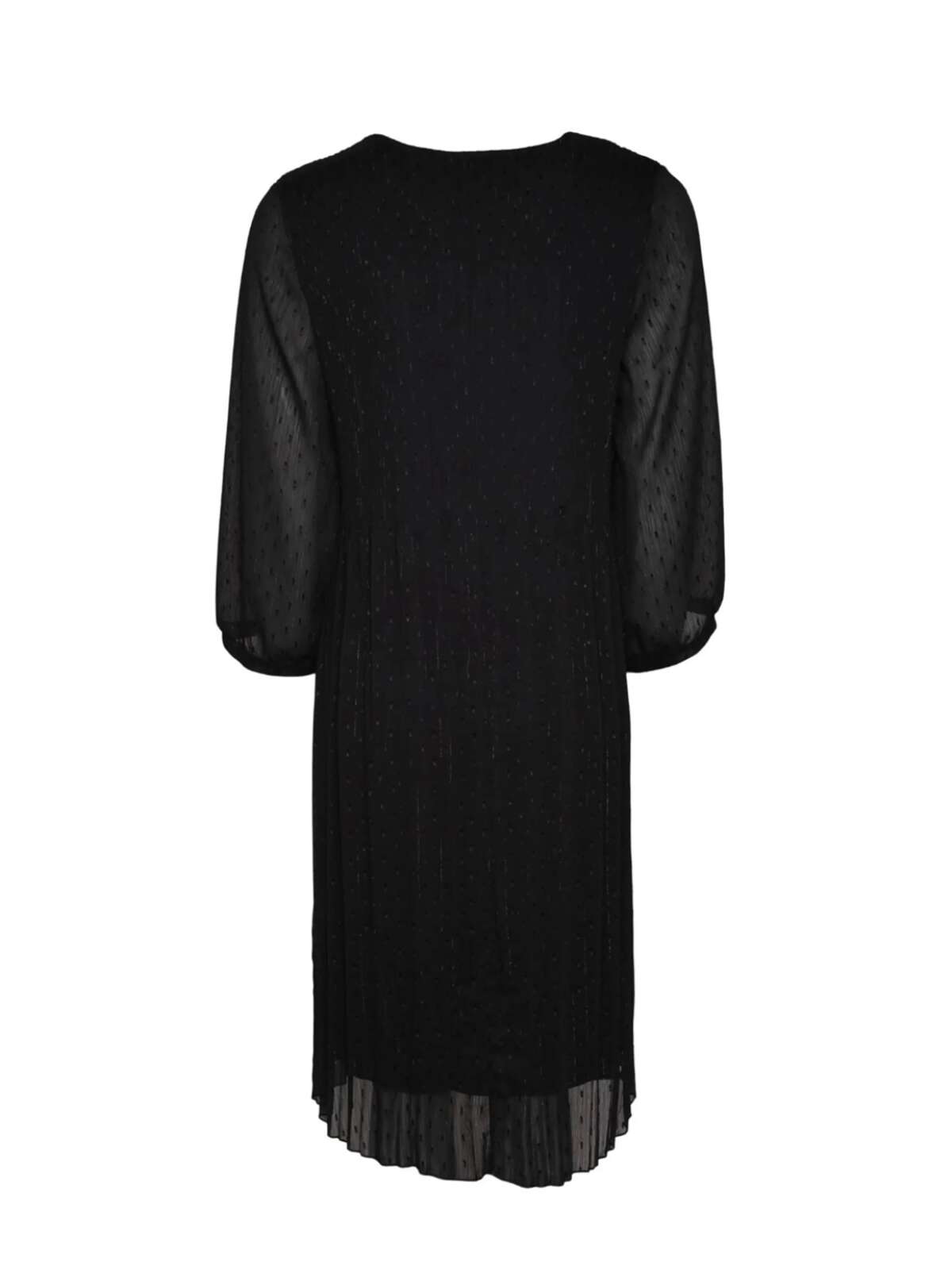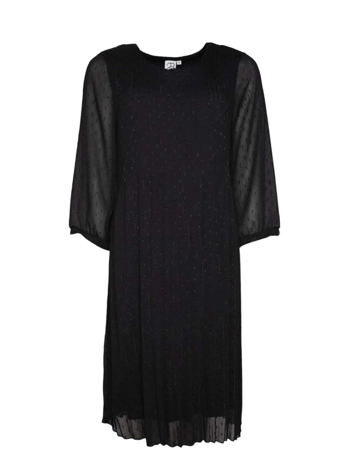 Feminin kjole fra 2-Biz. Kjolen har en rund hals, mesh ærmer med små tone i tone prikker, og er løst skørt der falder smukt på kroppen. Modellen er 175 cm høj og har en størrelse M på.Materiale: 100% Polyester