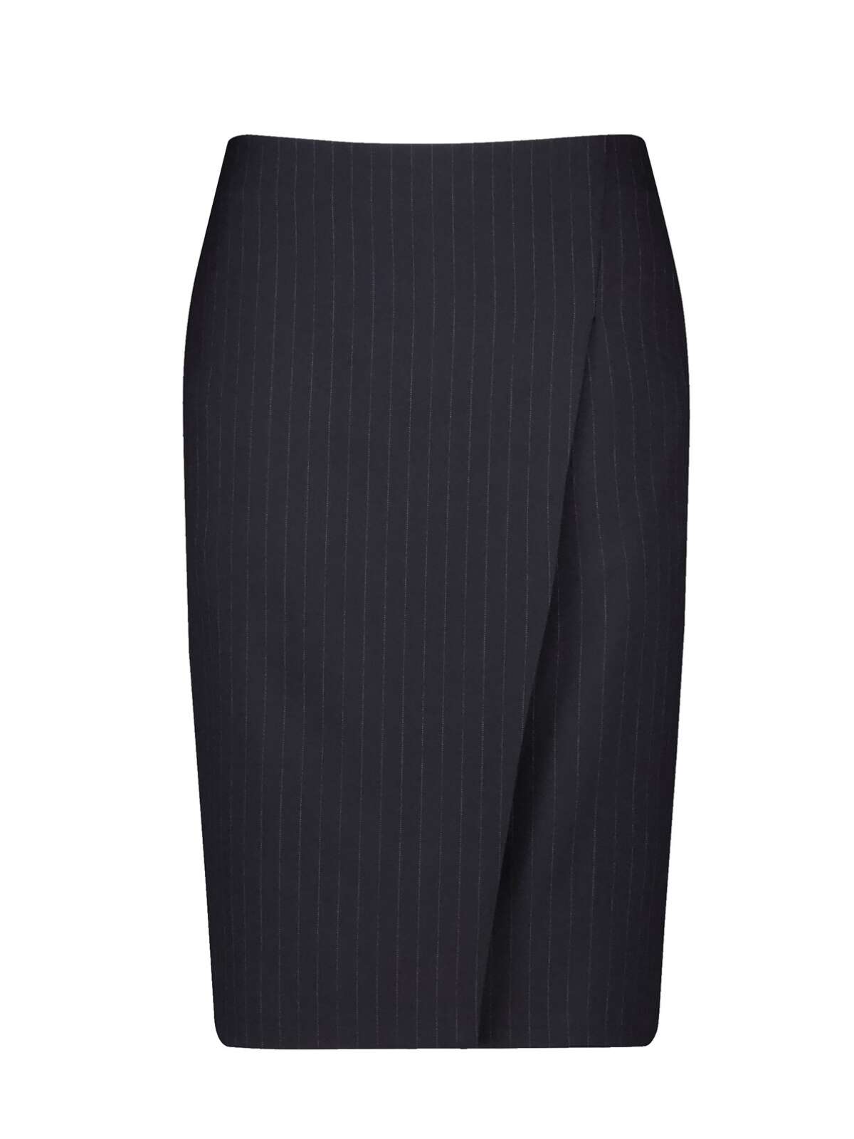 Sofistikeret nålestribet nederdel fra GERRY WEBER i pencil design med assymetrisk effekt foran. Nederdelen er talje tilpasset med lynlås bagtil.Længde: ca. 70 cm