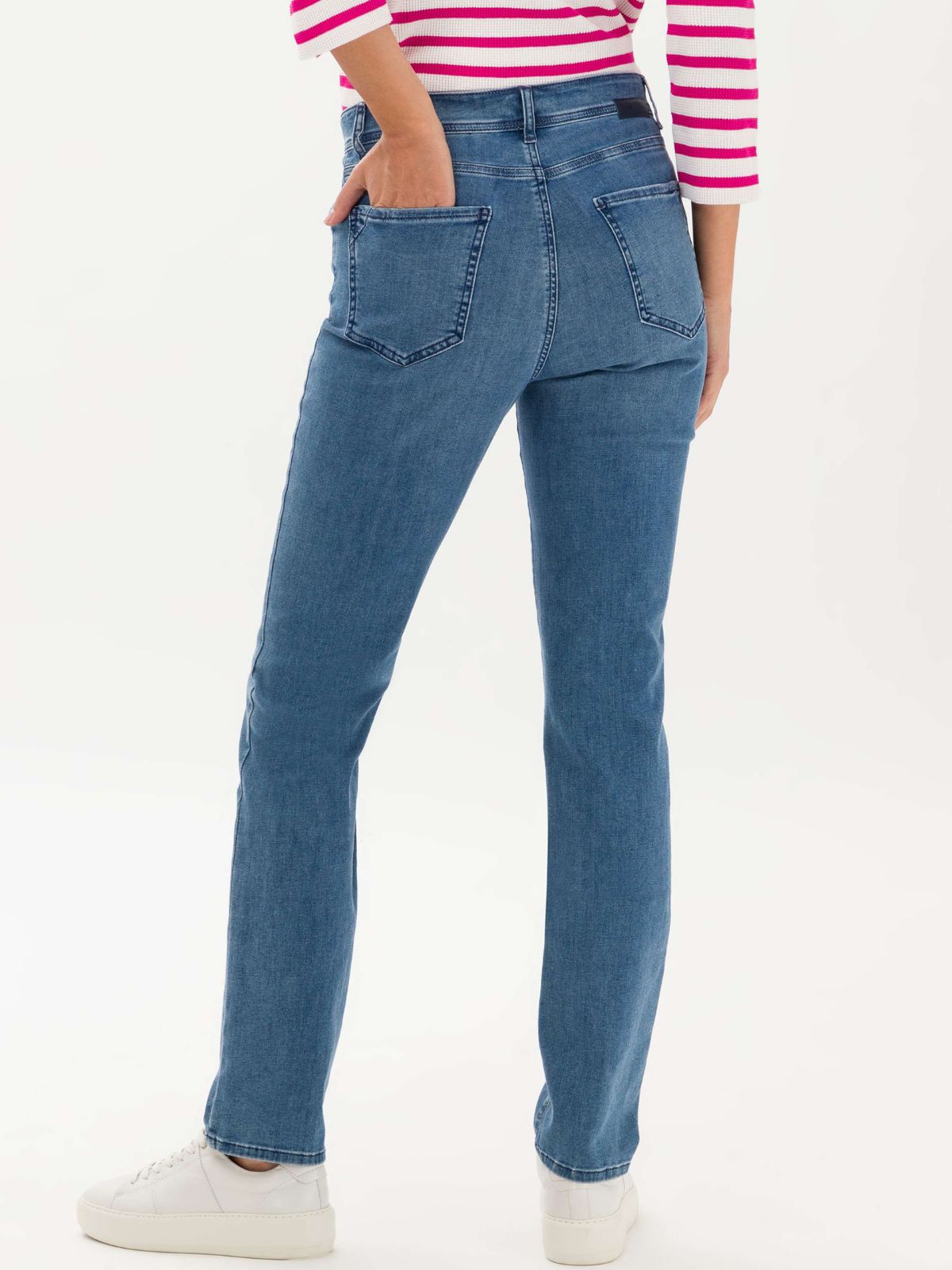 Klassisk Five Pocket denim buks fra BRAX i autentisk design samt i flotte klare farver og den kendte kvalitet med god bevægelsesfrihed. Model MARY har høj tajle med god elastisk komfort, slank lårvidde samt smal fodvidde, der giver figuren en smuk silhouette.* BLUE PLANET / Denne buks er produceret med ny innovativ bæredygtig proces, der skåner miljøet!