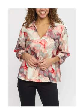 Charmerende bluse fra 2 BIZ i klare farver og print. Blusen har en kort krave samt dyb V-udskæring og 3/4 lange ærmer med elastisk kant.Pasform: Casual Fit