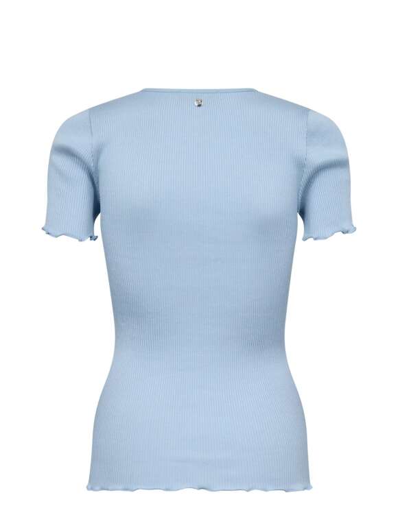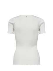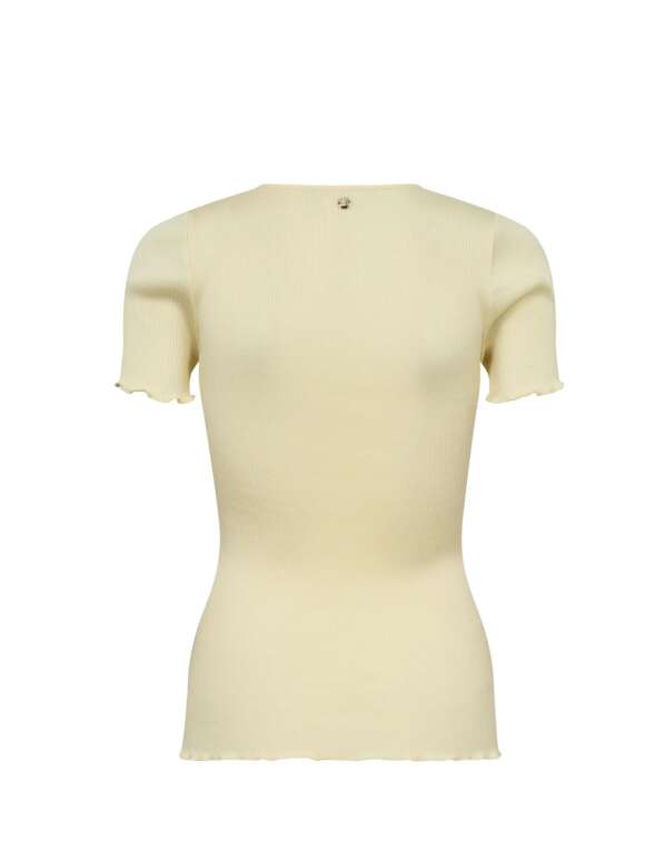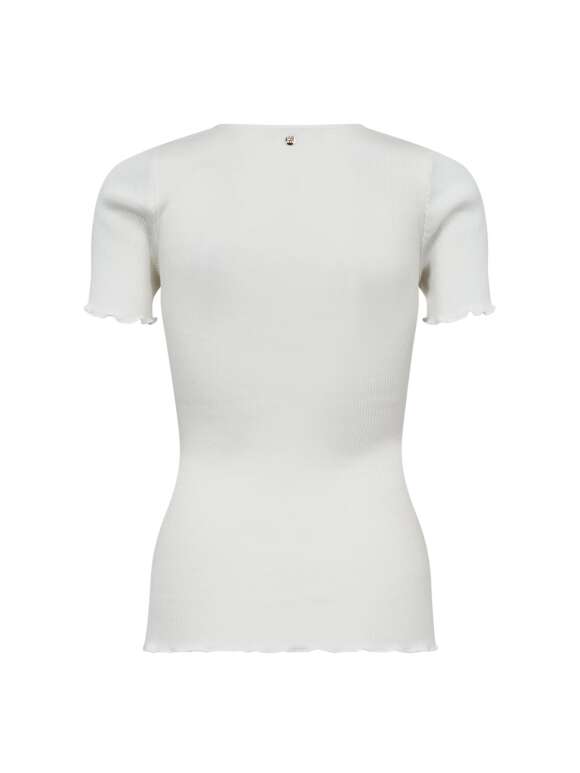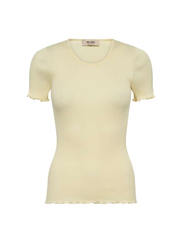 Feminin T-shirt i en tætsiddende pasform med ribdetaljer fra MOS MOSH er et musthave i enhver forårsgarderobe! T-shirten er fremstillet i en luksuriøs silke- og bomuldsblanding og har fine flæsekanter på ærmerne og forneden for et feminint tvist. Passer til stort set alt – lige fra tailored jakkesæk til denim og overskjorter.Længde: ca. 60 cm