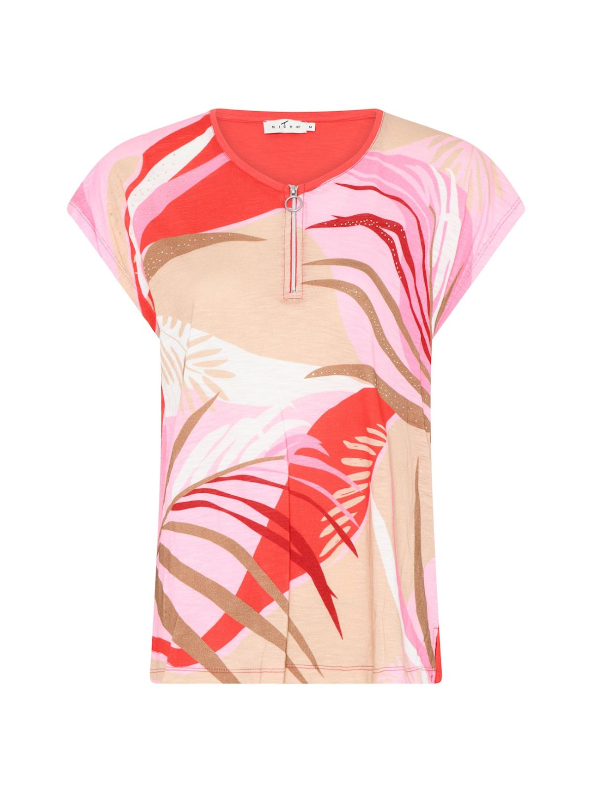 Charmant sommer bluse fra MICHA i abstrakt mønster i klare rene farver. Blusen har en let V-hals samt korte ærmer.Længde: ca. 62 cm