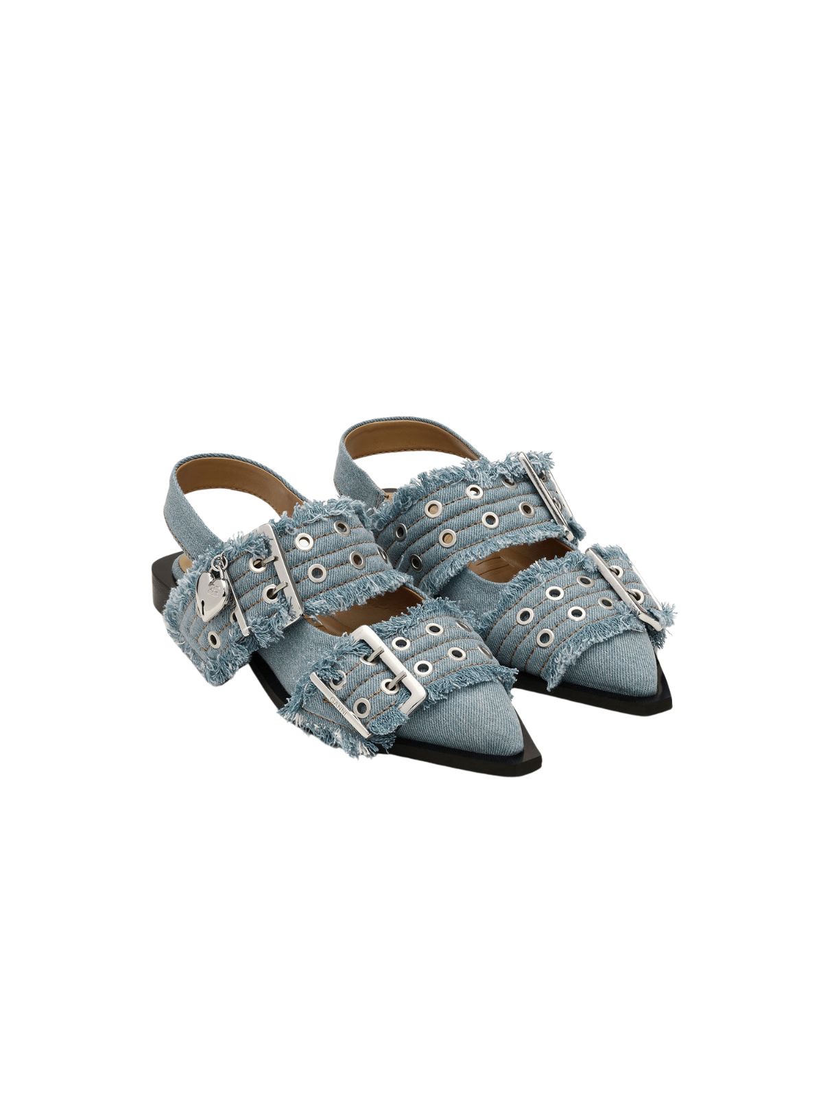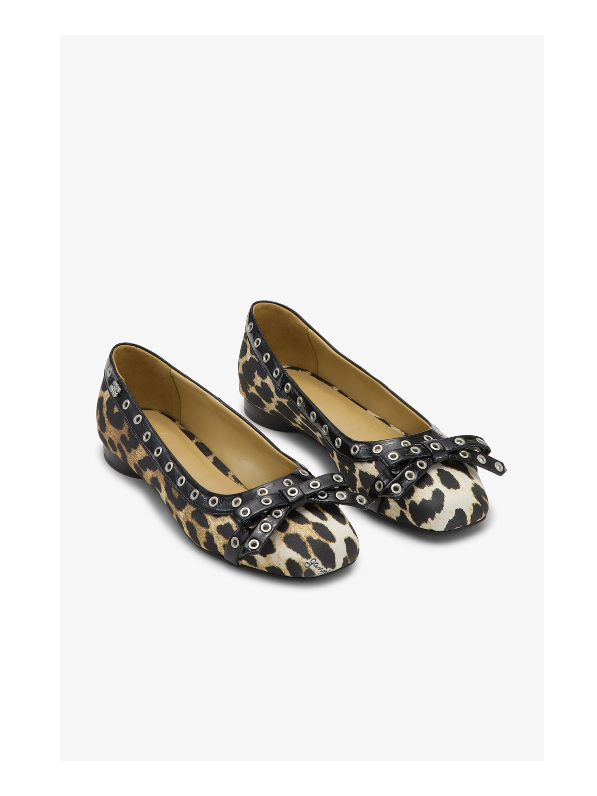 Chikke cremefarvede sløjfeballerinas fra GANNI med en afrundet firkantet tå, en dekorativ sløjfe og metaløjer.
