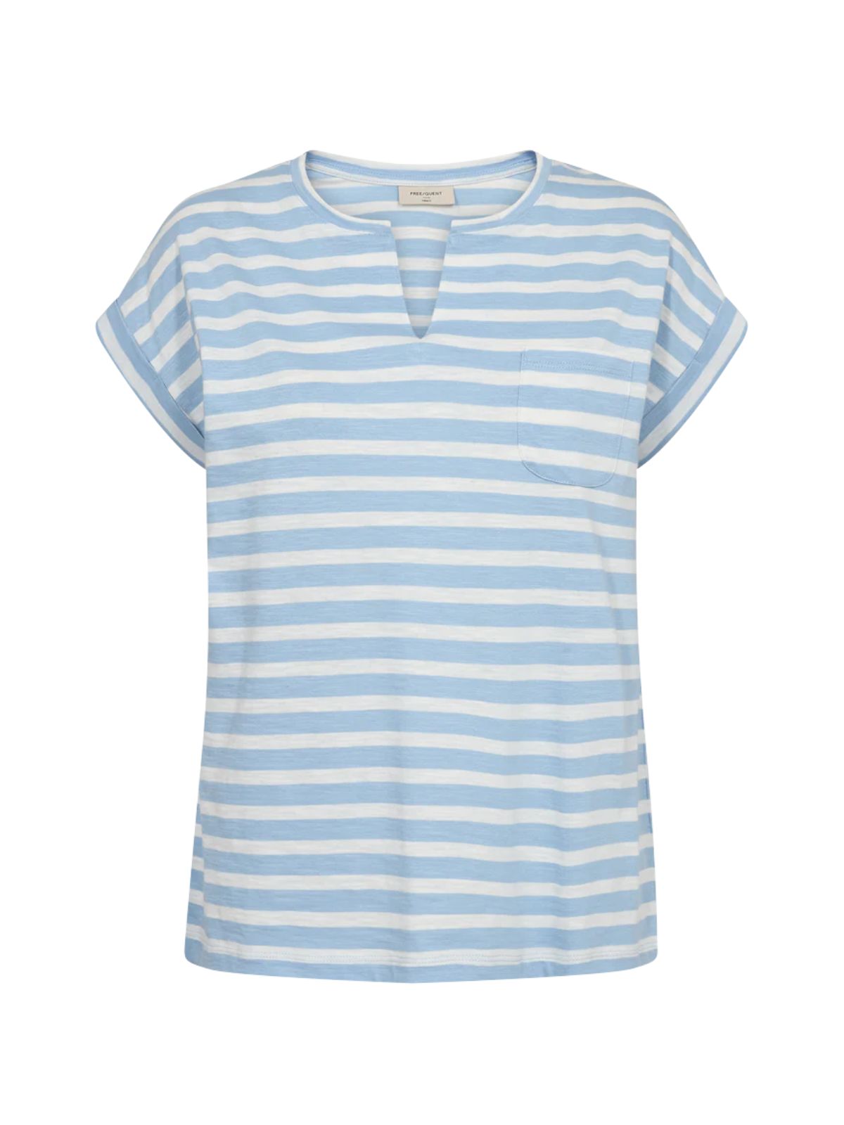 Fin t-shirt fra Freequent i med striber og v-hals samt lille brystlomme.