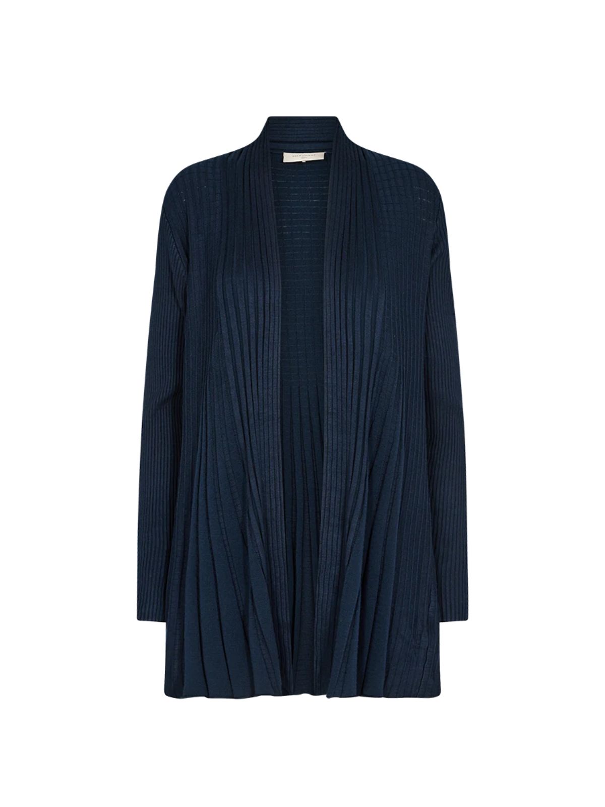 Lang cardigan fra Freequent i en blød kvalitet med en elegant struktur. Cardiganen er enkel i modellen med en åben front, lange ærmer med rib samt læg front og plissé bagtil, der giver en flot, plisseret effekt og A-faconFARVER: MOONBEAM, CHAMBRAY BLUE, NAVY