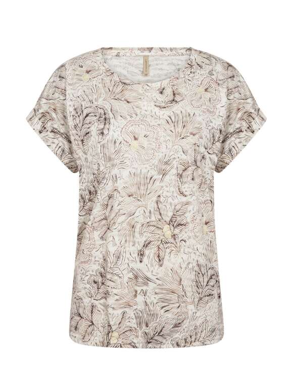 Smart T-shirt fra SOYA med botanisk print i sarte farver samt med rund hals og korte cap ærmer.Længde: 65 cm