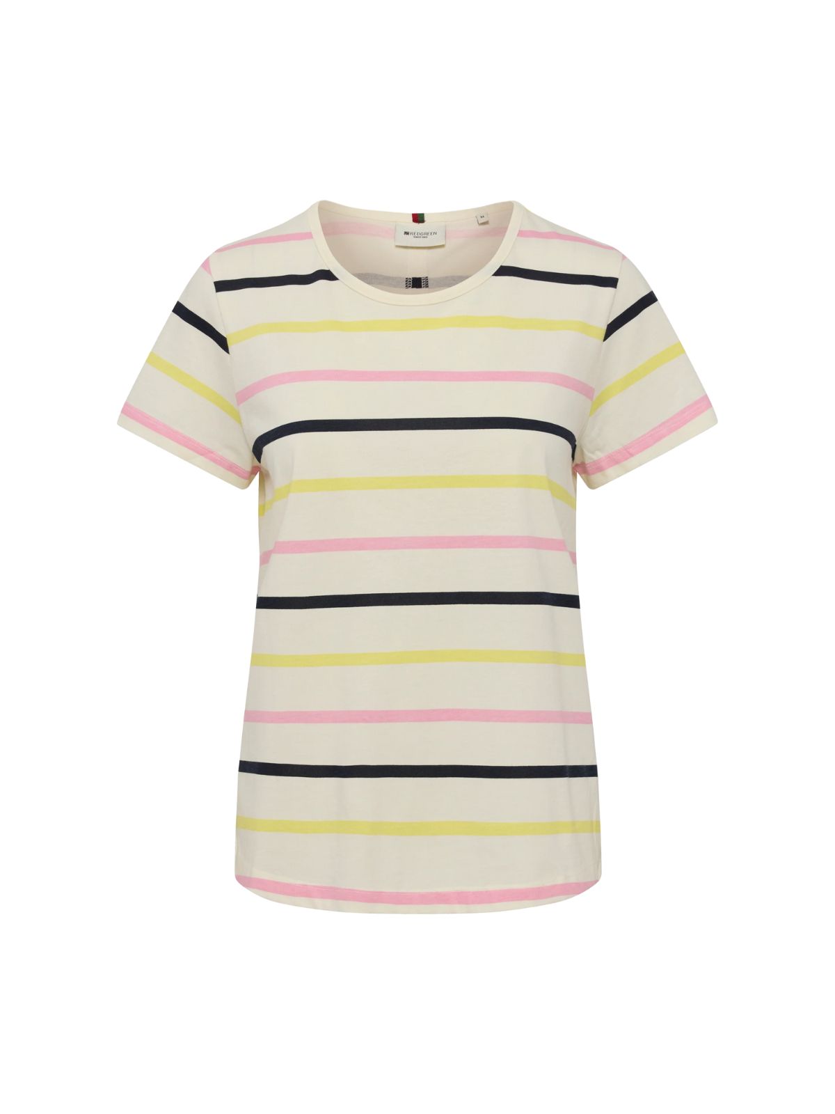 T-shirt i blød økologisk bomuld med klassisk rund hals og korte ærmer. De friske striber og den lille slids bagpå giver et enkelt design et diskret twist.