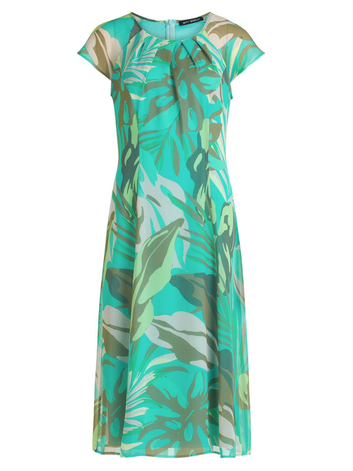 Henrivende chiffon kjole fra Betty Barclay i flot design og friske farver. Kjolen har en rundet halsudskæring med draperinger, let taljering der fremhæver figuren samt raglan skuldre med korte cap ærmer.Længde: ca. 115 cm