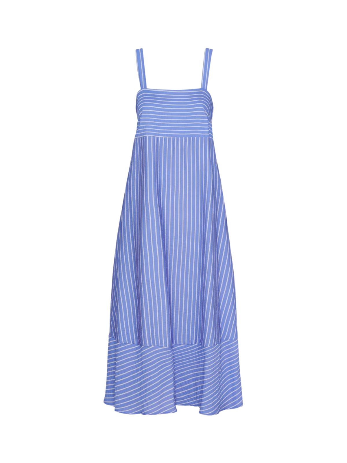 Sommerkjole med tynde stropper, hvide striber og smock-detalje på ryggen, der sikrer en flot pasform.