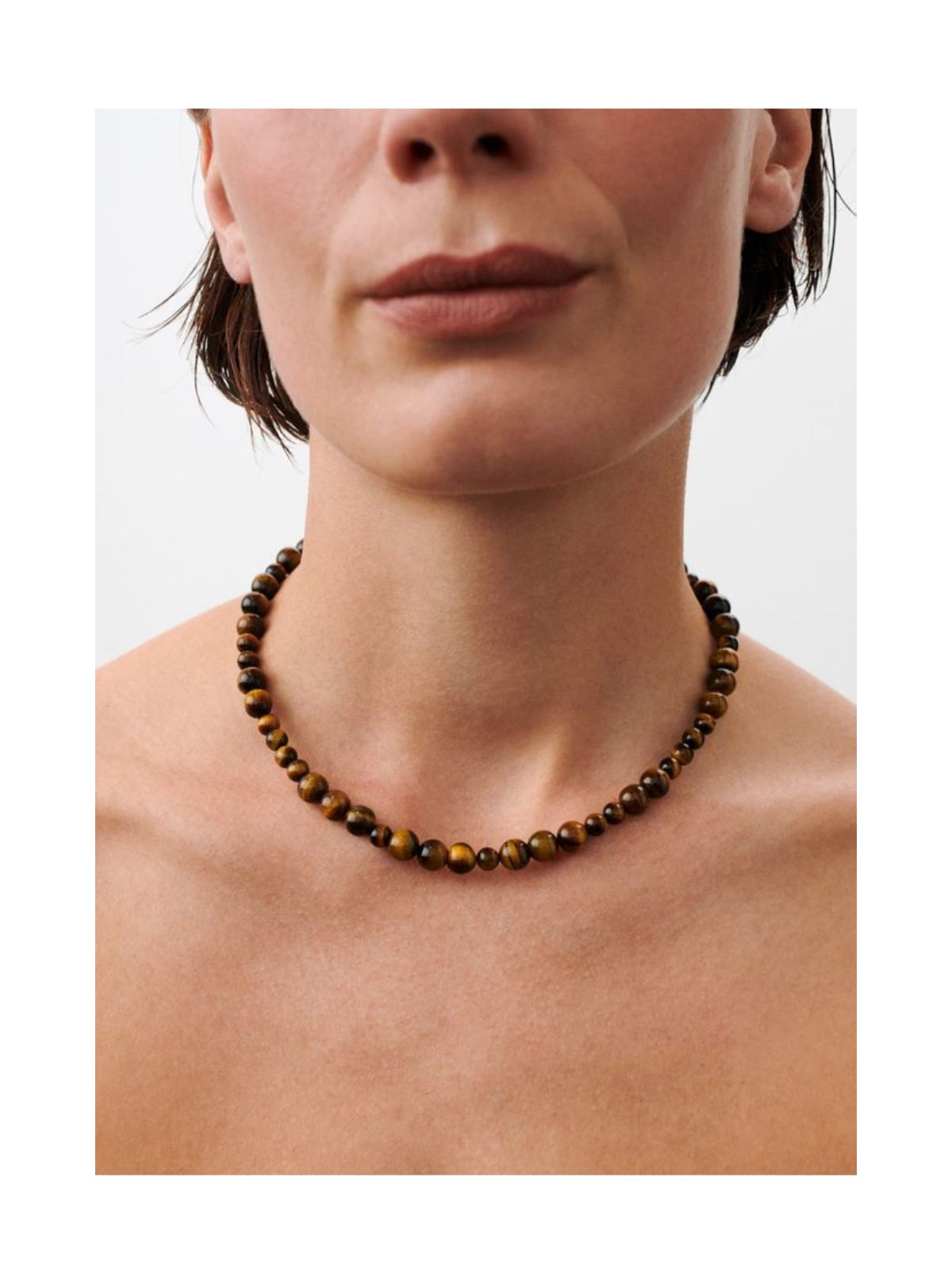 Earth-halskæden er et enkelt og elegant smykke med polerede Tiger Eye-sten, der hver især er unikke i både farve og struktur. Stenene forbindes med styrke og indre ro, og kæden er lavet i certificeret genanvendt sølv – både i sølv og forgyldt. En smuk, naturlig detalje til hverdagen.