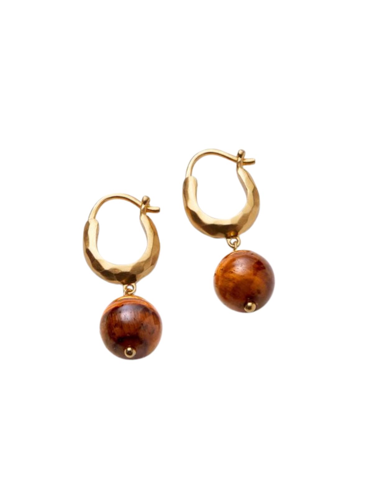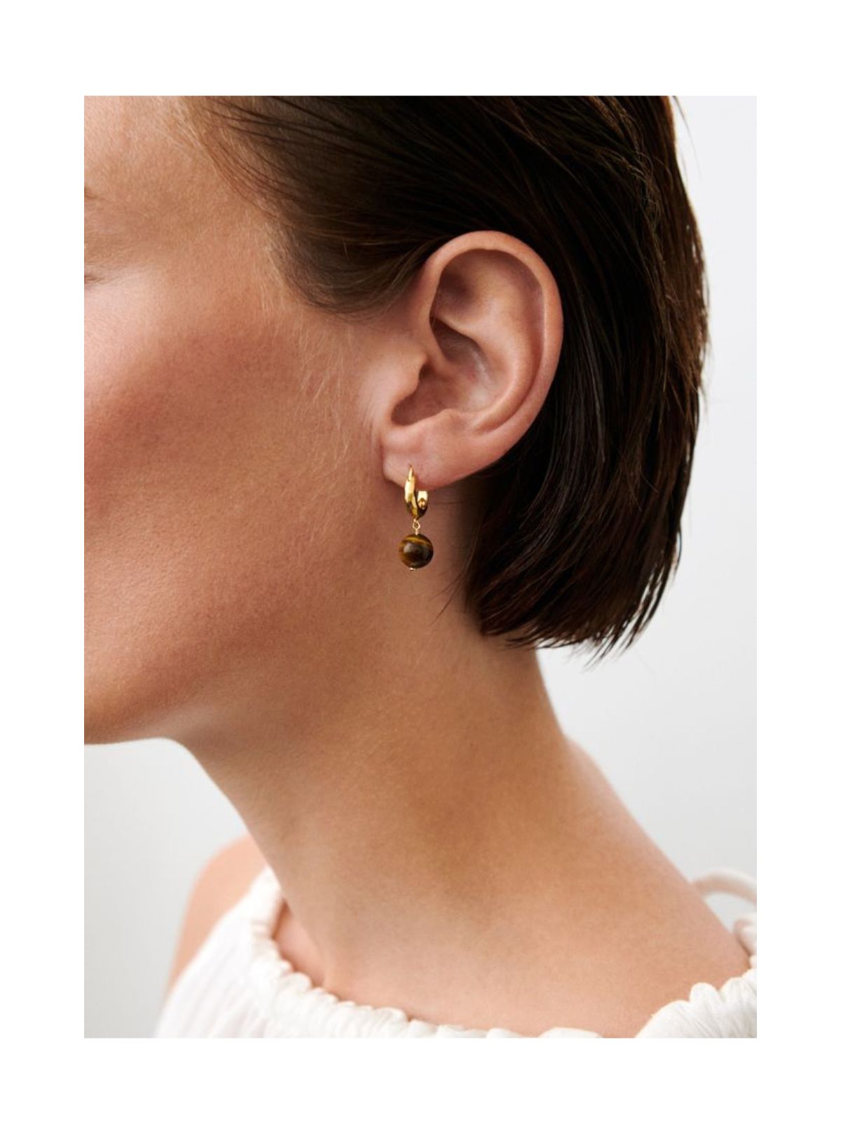 Earth-øreringene hylder naturens rå skønhed med smukke brune Tiger Eye-sten, der hver især er unikke i udtryk og tone. Stenen forbindes med styrke og indre ro og giver smykket et naturligt, organisk udtryk. Øreringene findes i både sølv og forgyldt, fremstillet i certificeret genanvendt sølv.
