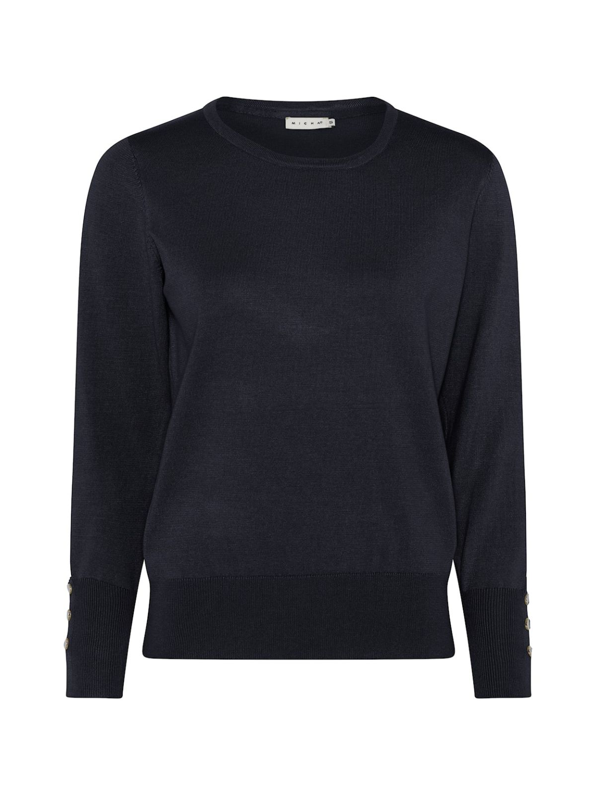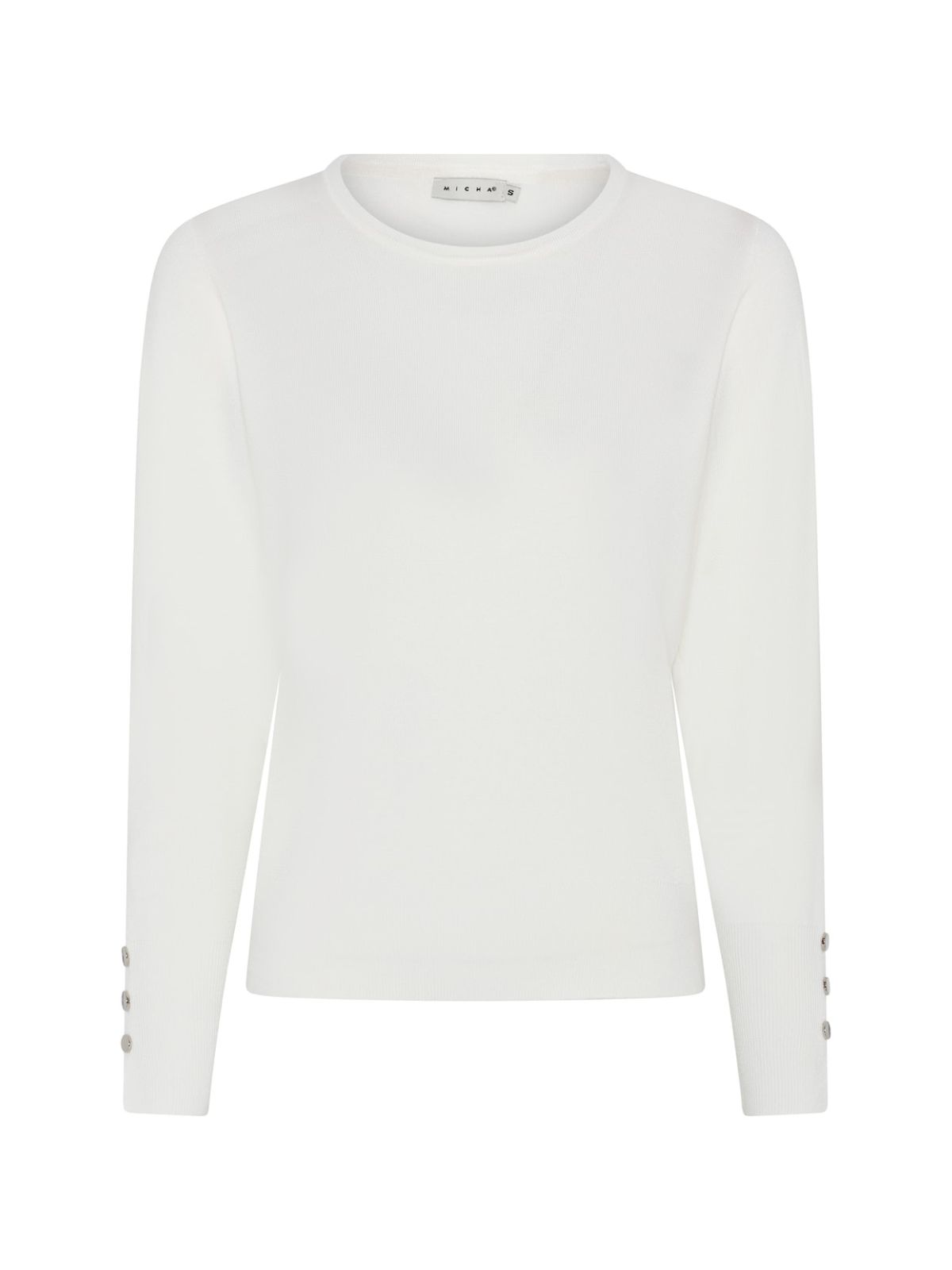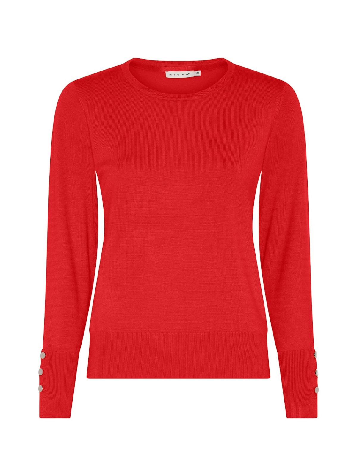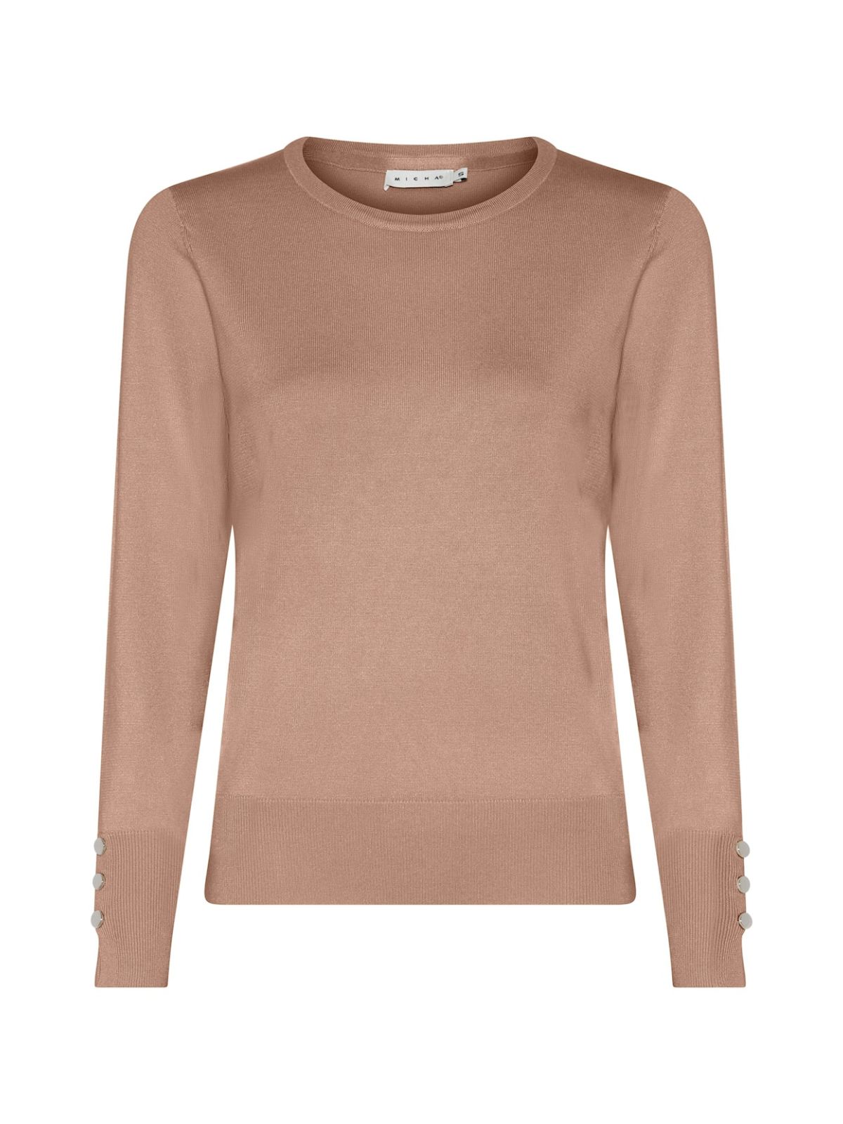 Skøn strik fra Micha. Strikken har fine knapdetaljer ved ærmerne, en rund halsudskæring og et regulært fit. Den kommer i mange smukke farver, der passer perfekt til den kølige tid.Materiale: 75% Viskose, 25% Polyamid