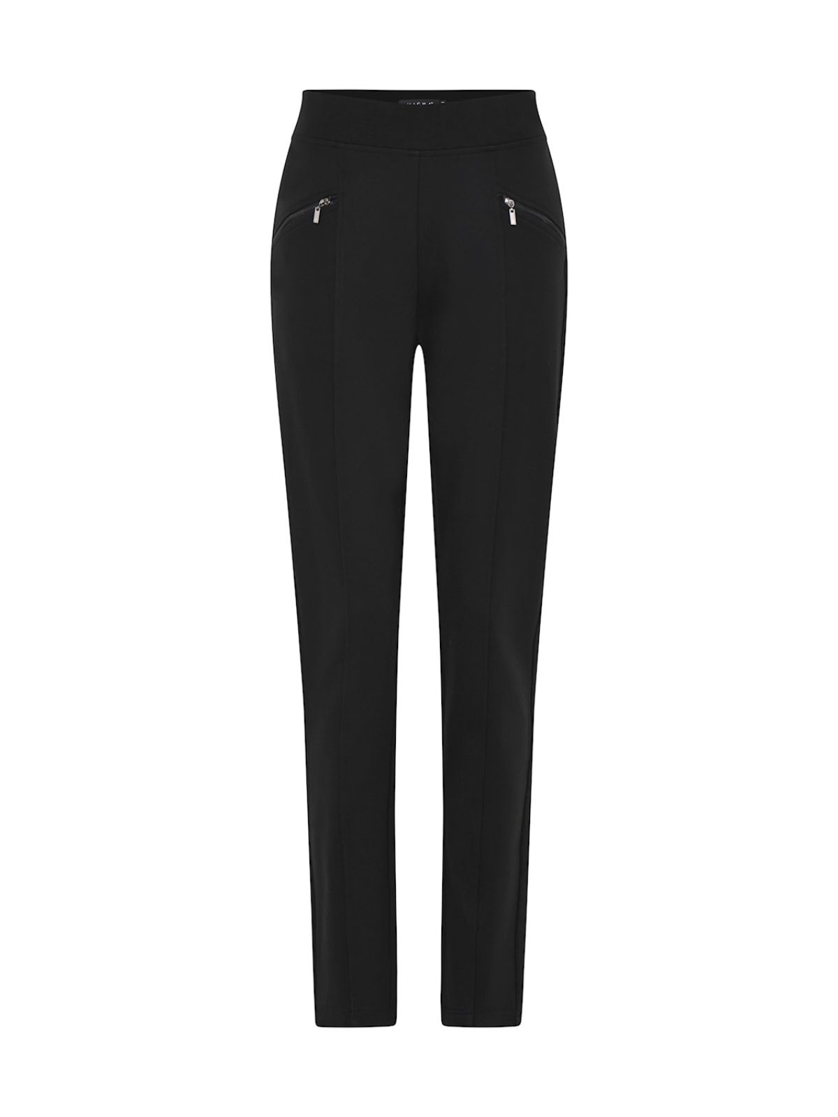 Skøn buks i strækbart materiale fra Micha. Buksen har lynlåslommer på fronten og en bred elastisk kant i taljen samt pressefold på fronten.Materiale: 65% Viskose, 30% Polyamid, 5% Elastan