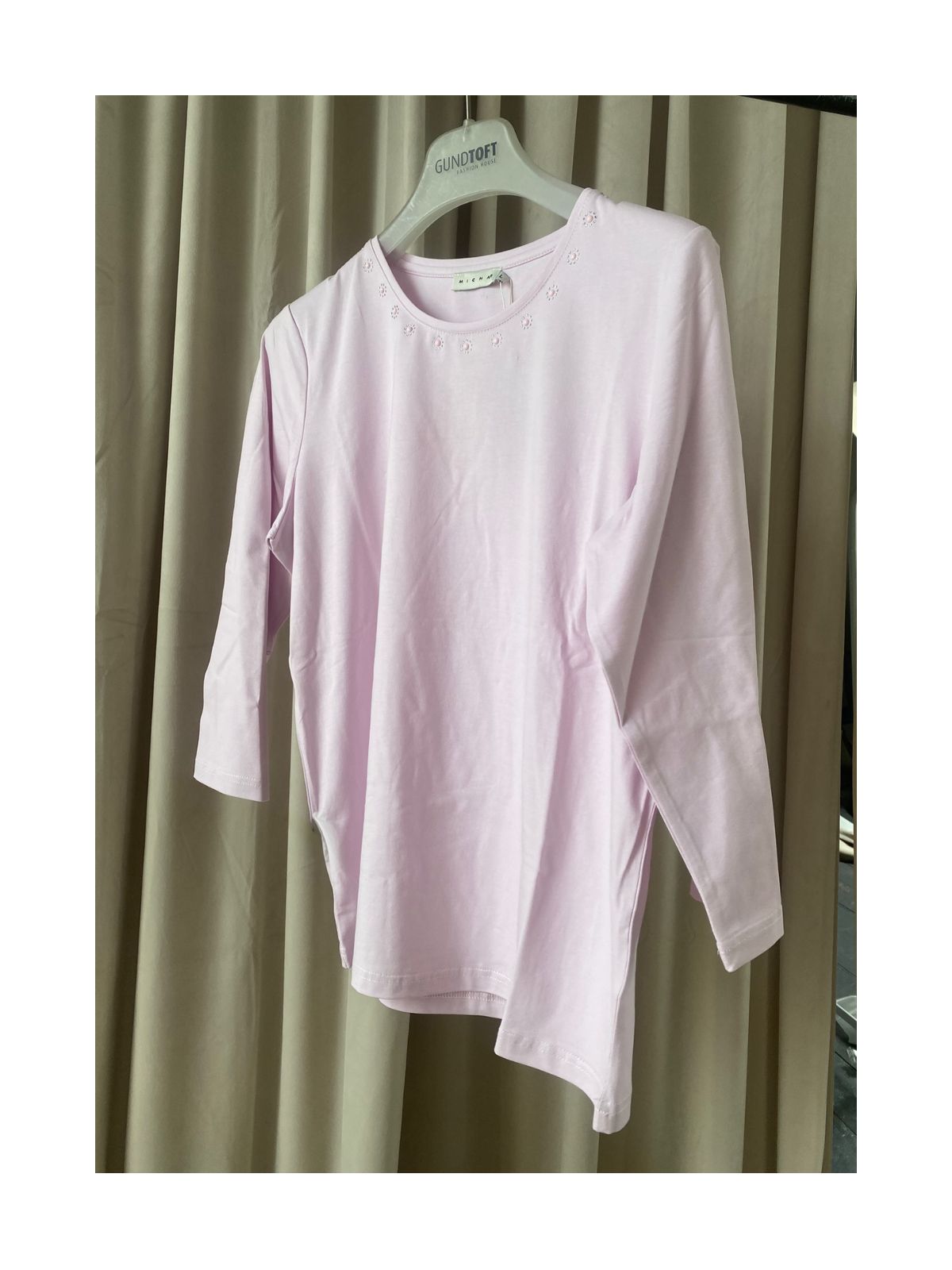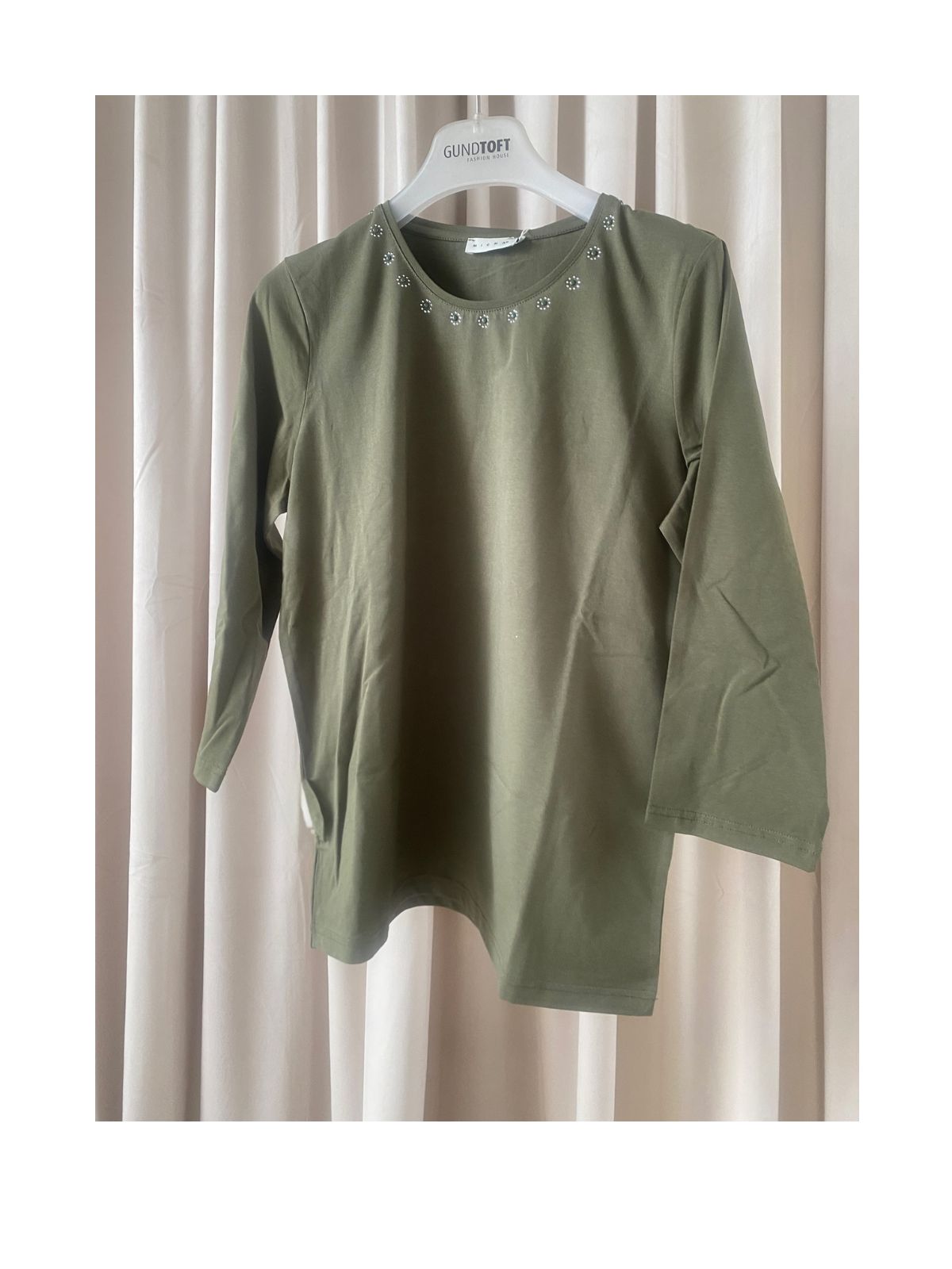 Elegant t-shirt fra Micha, med nitte detaljer ved kraven, 3/4 ærmer og en rund krave udskæring.