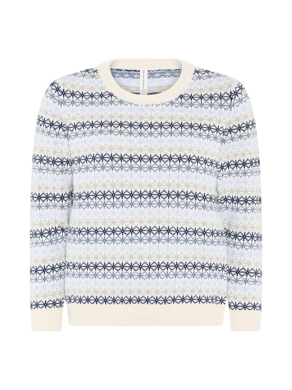 Skøn strikbluse fra Skovhuus. Strikken har en rund halsudskæring, lange ærmer og mønster i strikken. Perfekt til de kolde efterårs/vinter dage.Materiale: 100% Økologisk bomuld