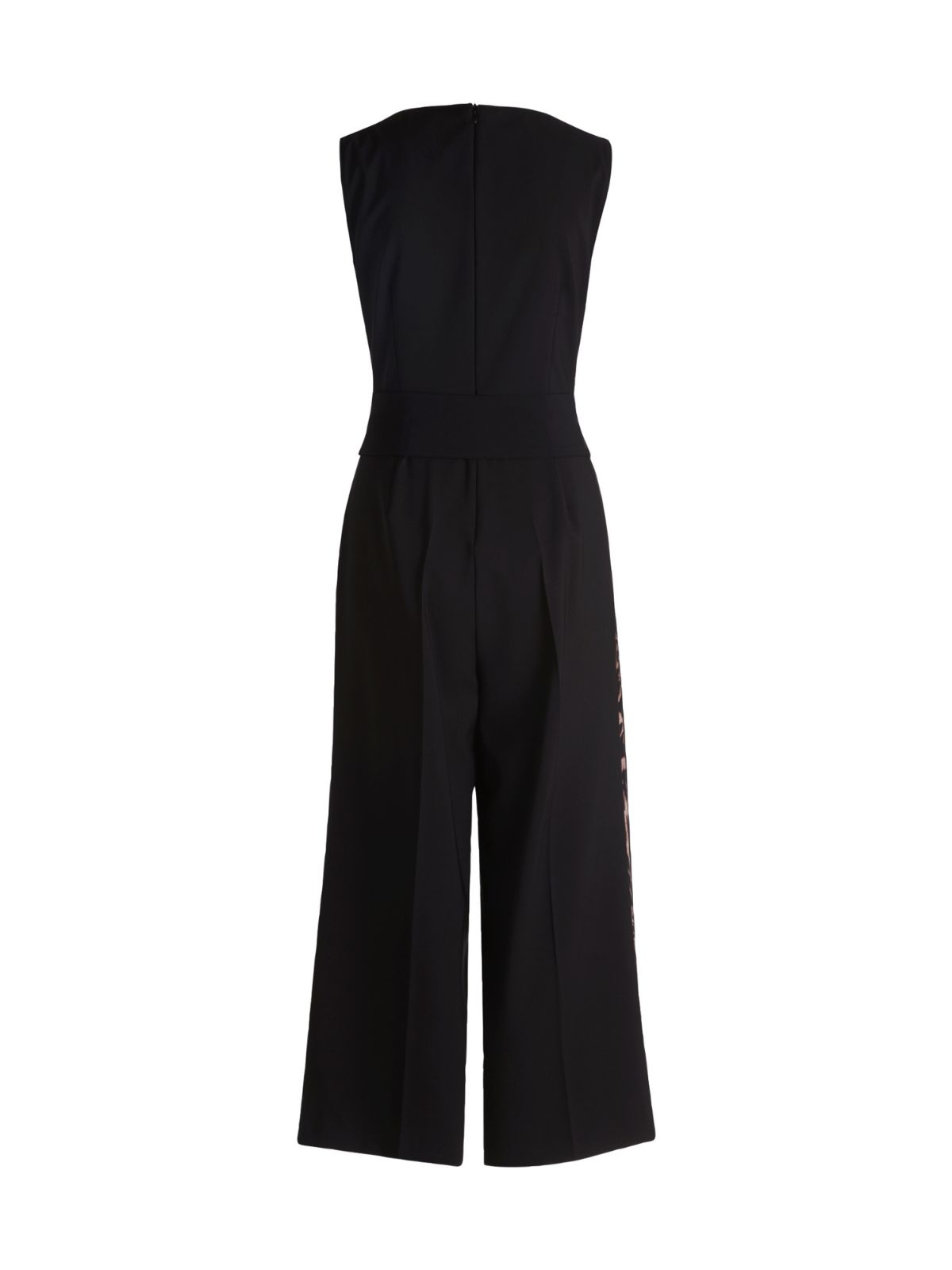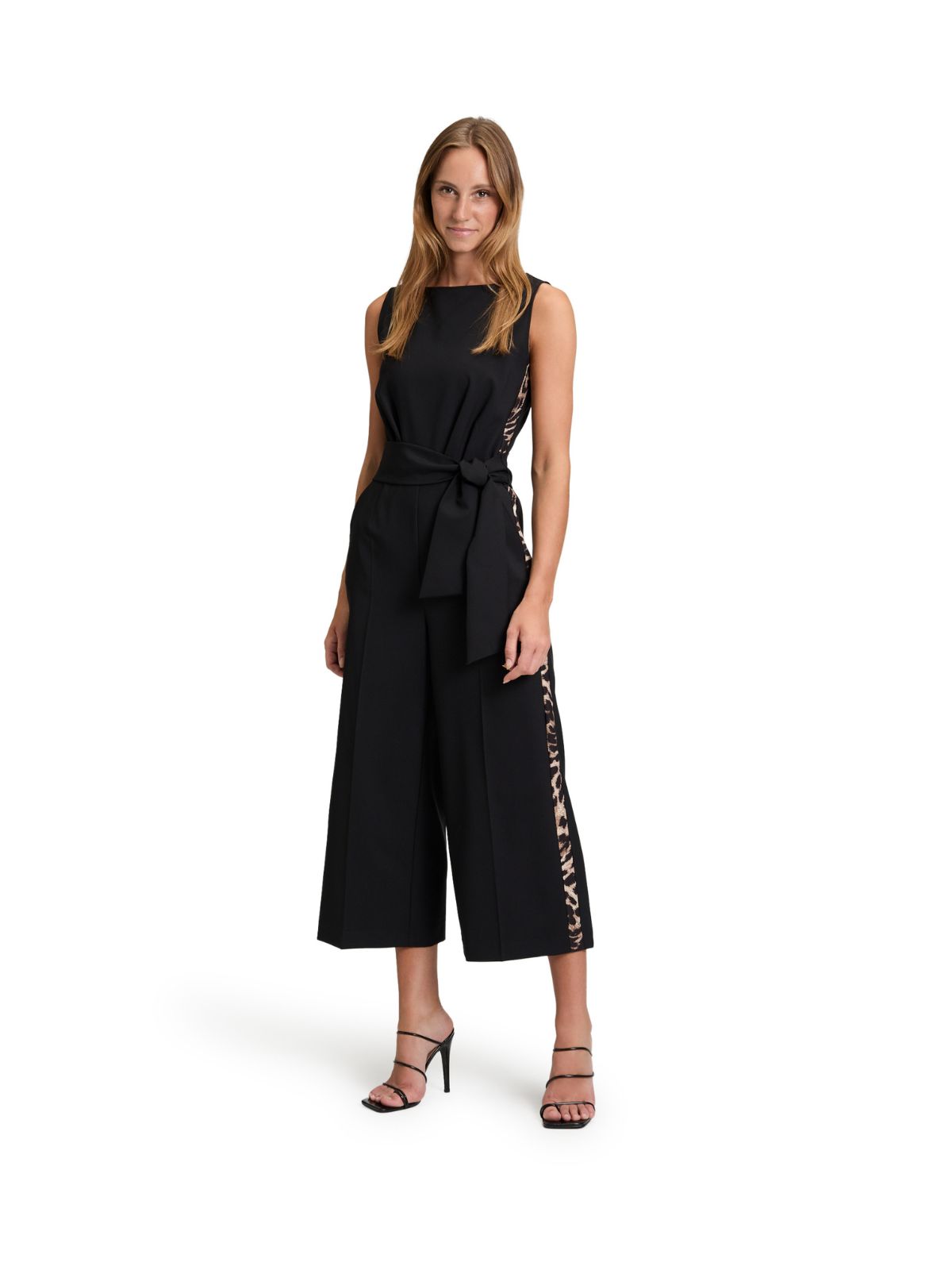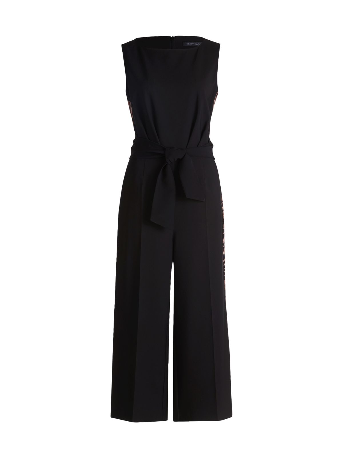 Smart jumpsuit fra Betty Barclay. Buksedragten har brede ben, overdel uden ærmer, en leopard stribe langs siderne samt et bindebånd i taljen og sidelommer.Materiale: 86% Polyester, 14% Elastan