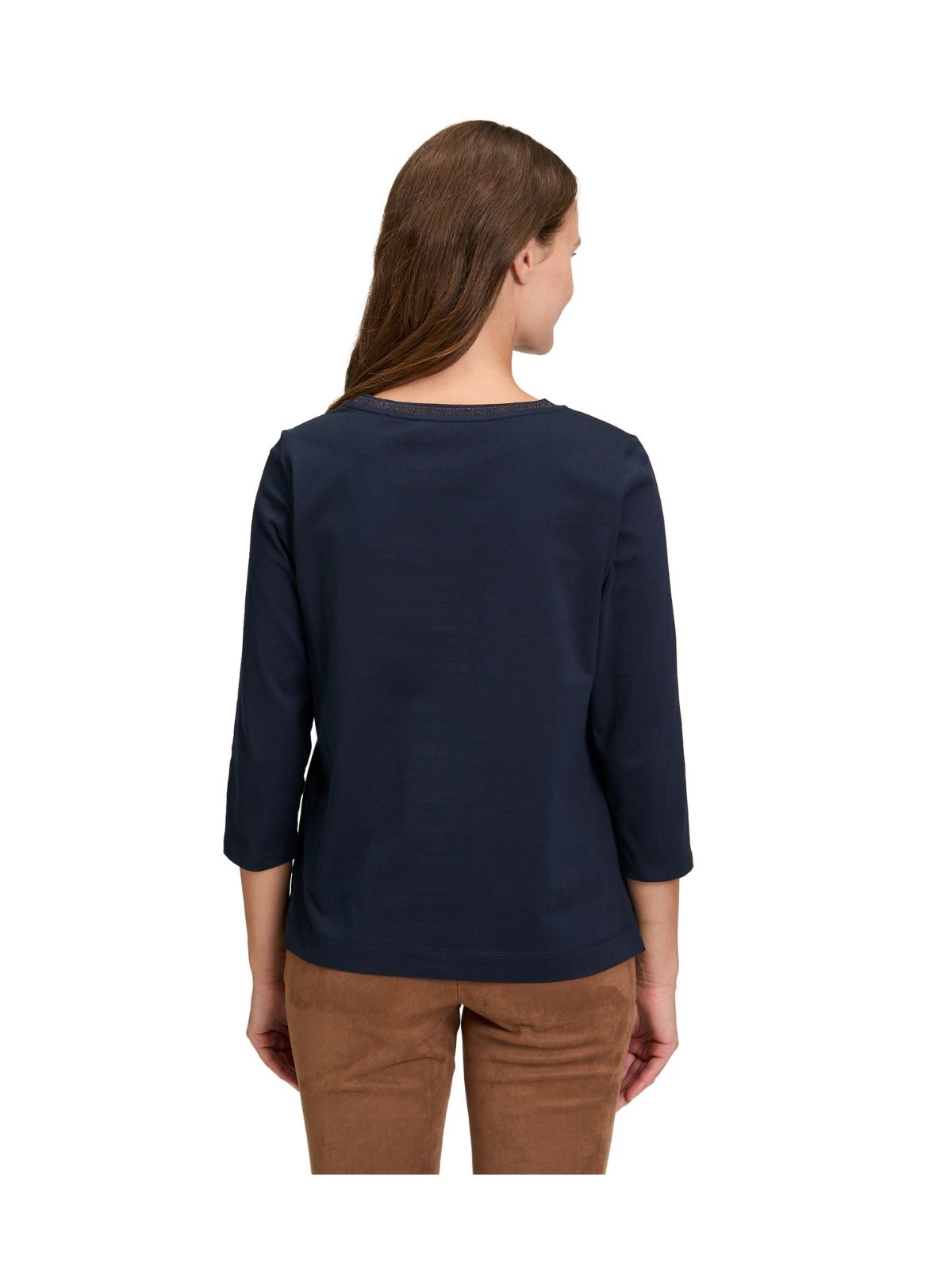 Moderne bluse fra Betty Barclay. Blusen har et flot iøjenfaldende print på fronten, 3/4 lange ærmer og en lækker bomulds kvalitet. Et perfekt valg til at tilføje et cool og personligt udtryk til hverdagsgarderoben.Materiale: 100% Bomuld