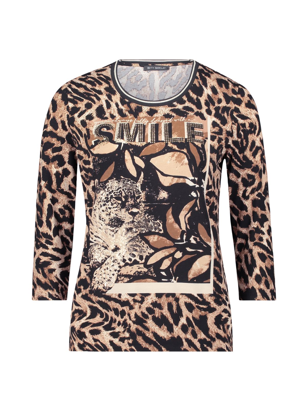 Denne feminine bluse fra Betty Barclay kombinerer komfort og stil i ét. Den runde halsudskæring og de 3/4 lange ærmer giver et elegant udtryk, mens det bløde jerseymateriale med dyreprint tilfører et moderne og iøjnefaldende touch.Materiale: 95% Viskose, 5% Elastan