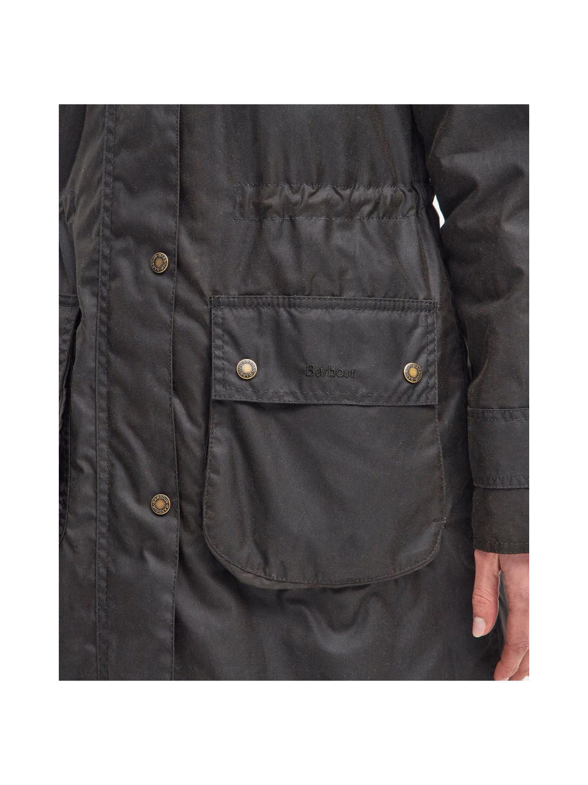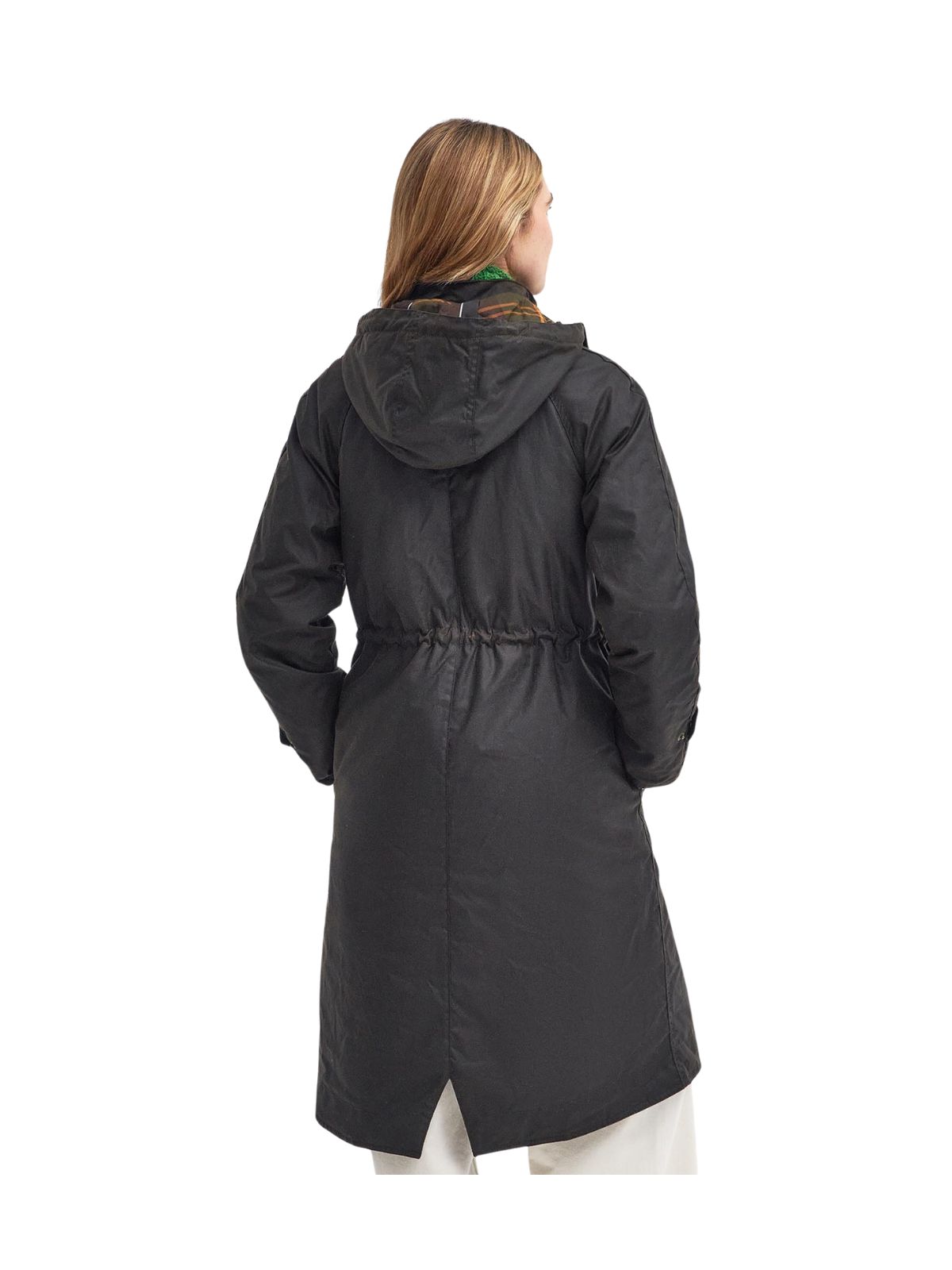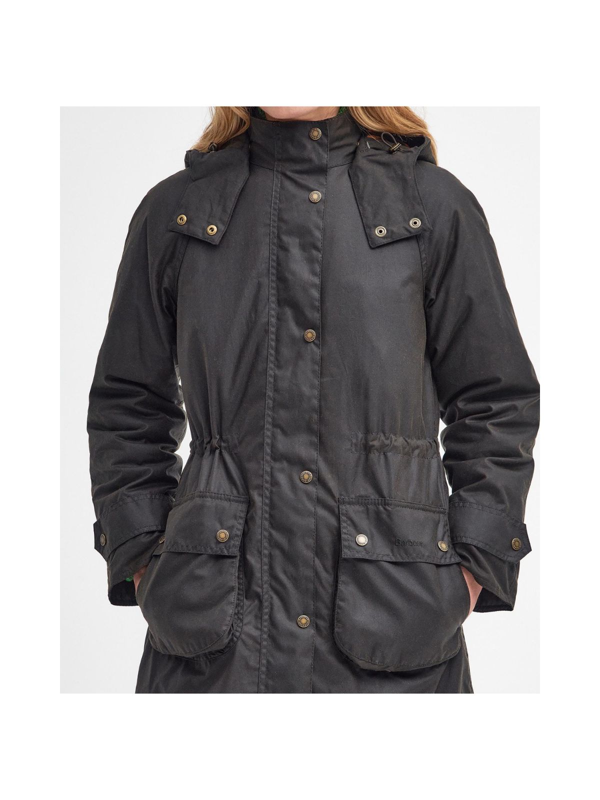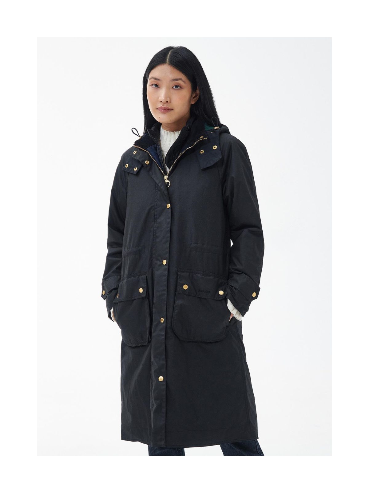 Smuk jakke i et længere design med quiltet foring, der sikrer komfort og varme. Jakken har fast hætte, feminint fiskehalebagstykke og to klassiske lommer med god plads. Afsluttet med diskret Barbour-branding på venstre lomme – en stilfuld jakke, der kombinerer funktionalitet og tidløst design.Materiale: 100% Bomuld (waxed) | Foring: 65% Polyester, 35% Bomuld