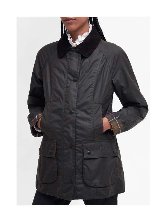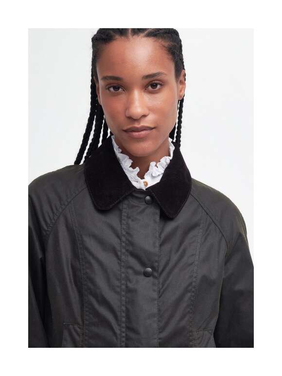 Beadnell® voksjakken fra Barbour er baseret på den legendariske Bedale®, men skåret i en flatterende, feminin silhuet. Den har en ikonisk stil fremstillet i traditionel, vokset bomuld Jakken har cordoroy krave med tartan terne for på bagsiden samt lunlås lukning og vindfang med trykknapper. Broderet logo ved lomme.Længde: ca. 74 cm