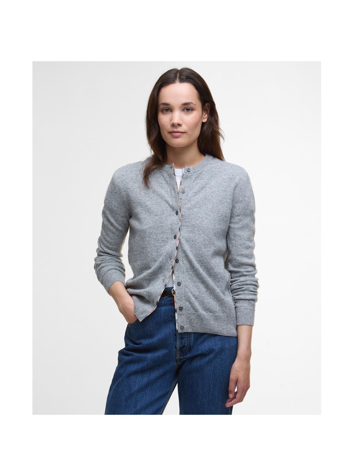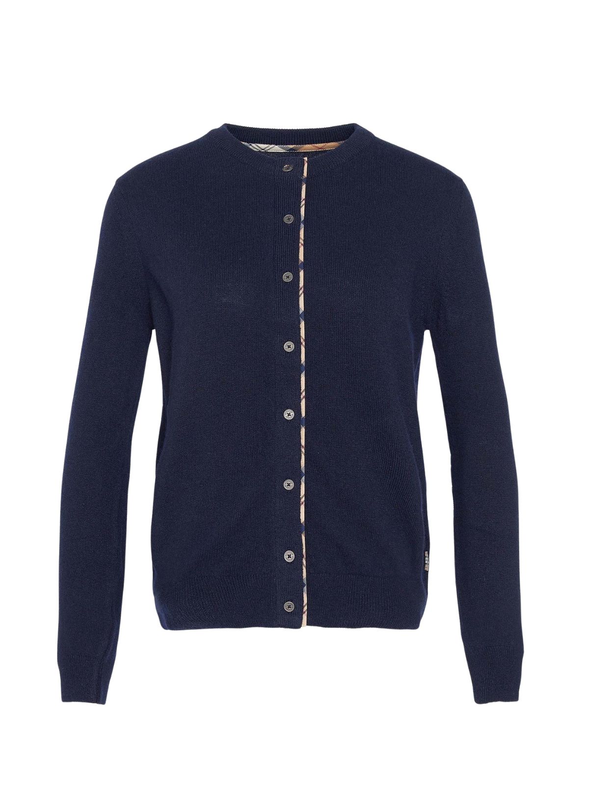 En smart og stilfuld cardigan fra Barbour. Strikken i uld- og bomuldsblanding er detaljeret med ternet trim i nakken, langs knaplukningen og på albuelapperne, hvilket giver et feminint touch til afslappede weekendlooks.Materiale: 55% Uld, 45% Bomuld