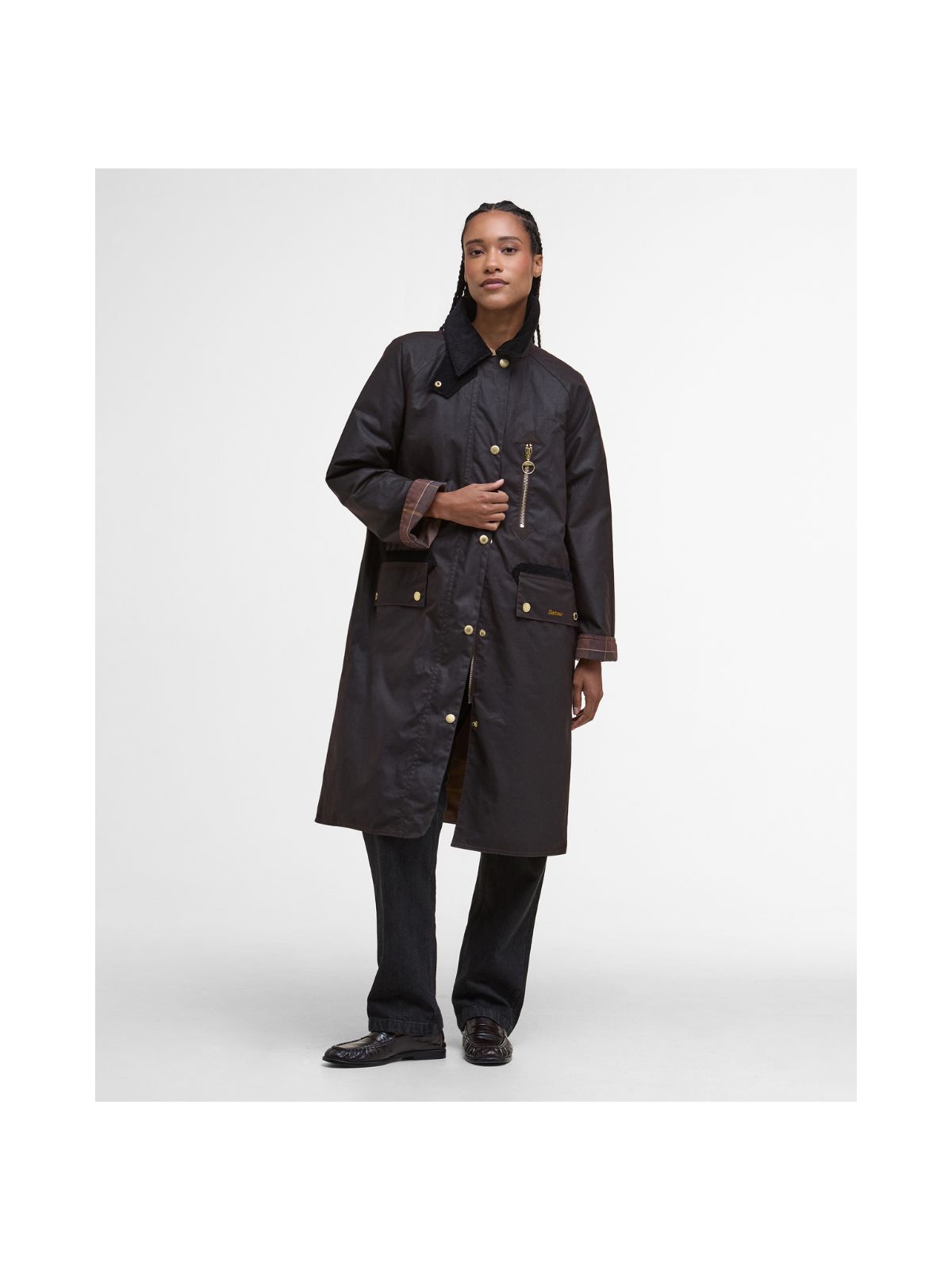 Barbour Evette Waxed jakke forener klassisk heritage-stil med moderne funktionalitet. Jakken har en ikonisk fløjskrave, ternet foring og en dyb slids bagpå, som giver en rummelig og behagelig pasform. Den lukkes med lynlås og trykknapper samt har en praktisk kortlomme med lynlås – en pålidelig favorit, uanset vejret.Materiale: 100% Bomuld (Waxed) | Foer: 65% Polyester, 35% Bomuld
