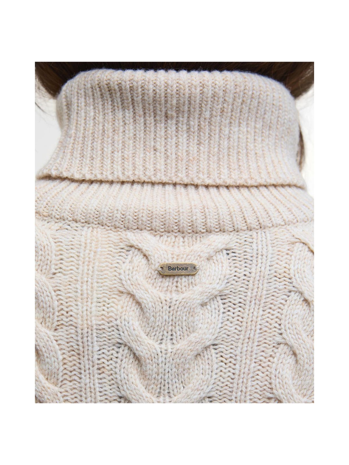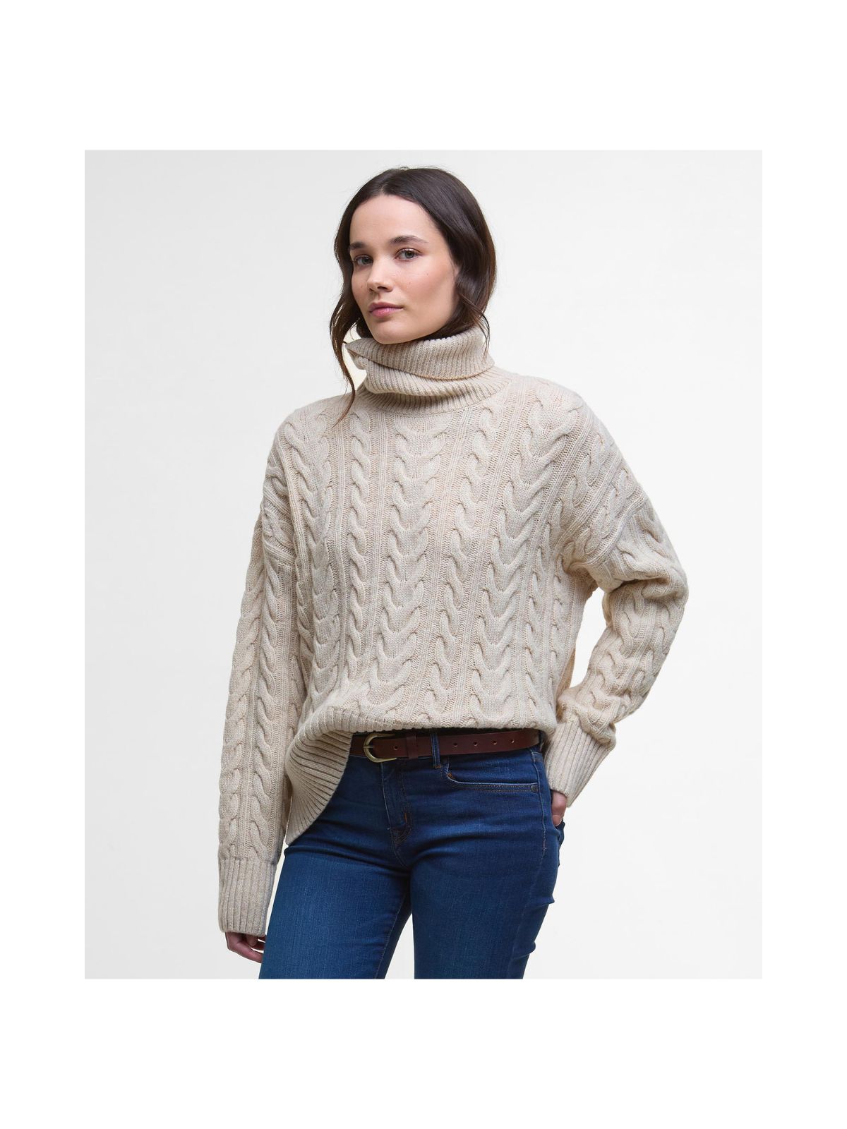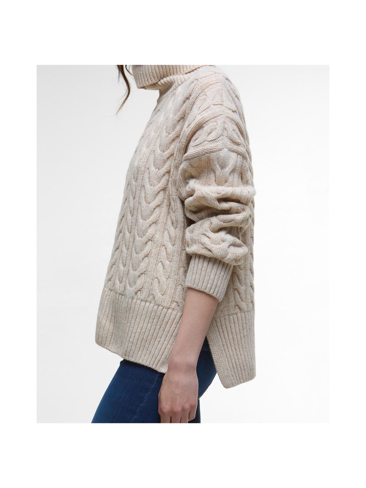 Flot kabelstrik fra Barbour. Strikken har en høj hals, lange ærmer med ribkant, slids i siderne og et afslappet fit.Materiale: 80% Uld, 20% Polyamid