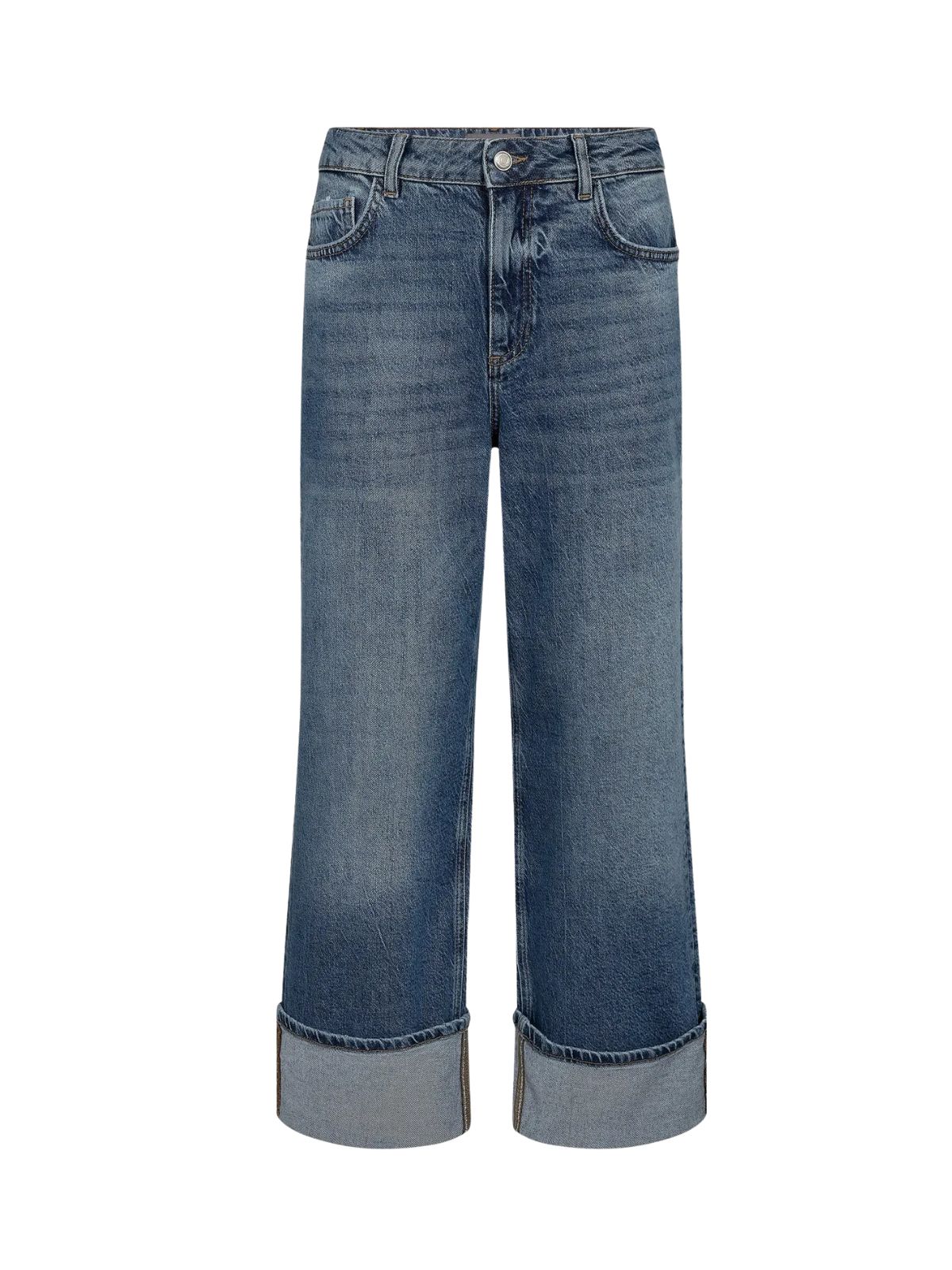 Smarte Mos Mosh jeans med høj talje, lige ben og brede opsmøg for et moderne, afslappet look. Den klassiske blå vask og behagelige pasform gør dem perfekte til både hverdag og fritid.