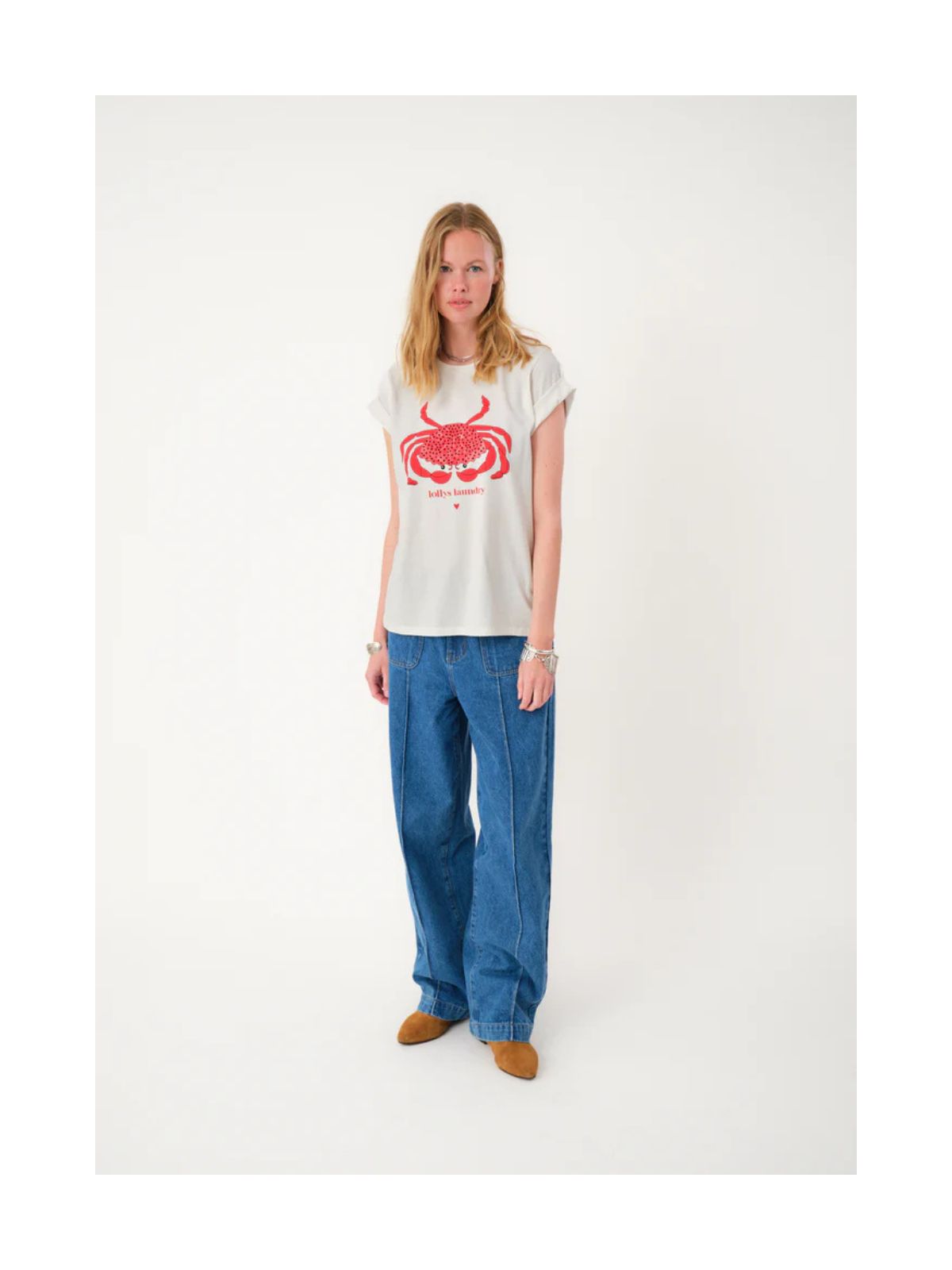 Smart T-shirt fra Lollys Laundry i en blød og komfortabel kvalitet med masser af personlighed. T-shirten er lavet i 100% bomuld og har et grafisk print af en rød krabbe foran. Printet står flot i en klar rød nuance, der tilføjer sommerstemning og karakter til dit look. Pasformen er klassisk med rund hals og korte ærmerLængde: ca. 60 cm