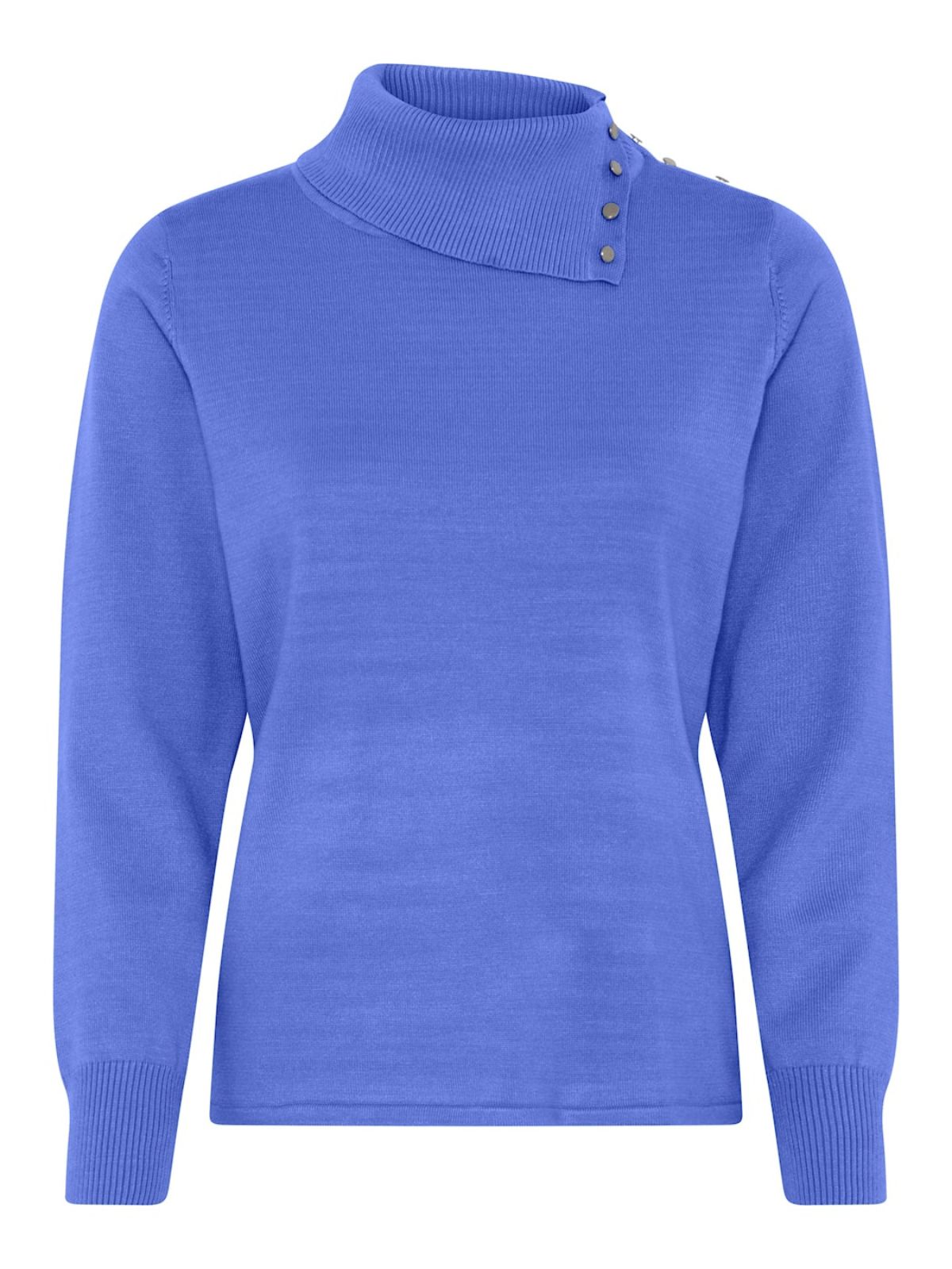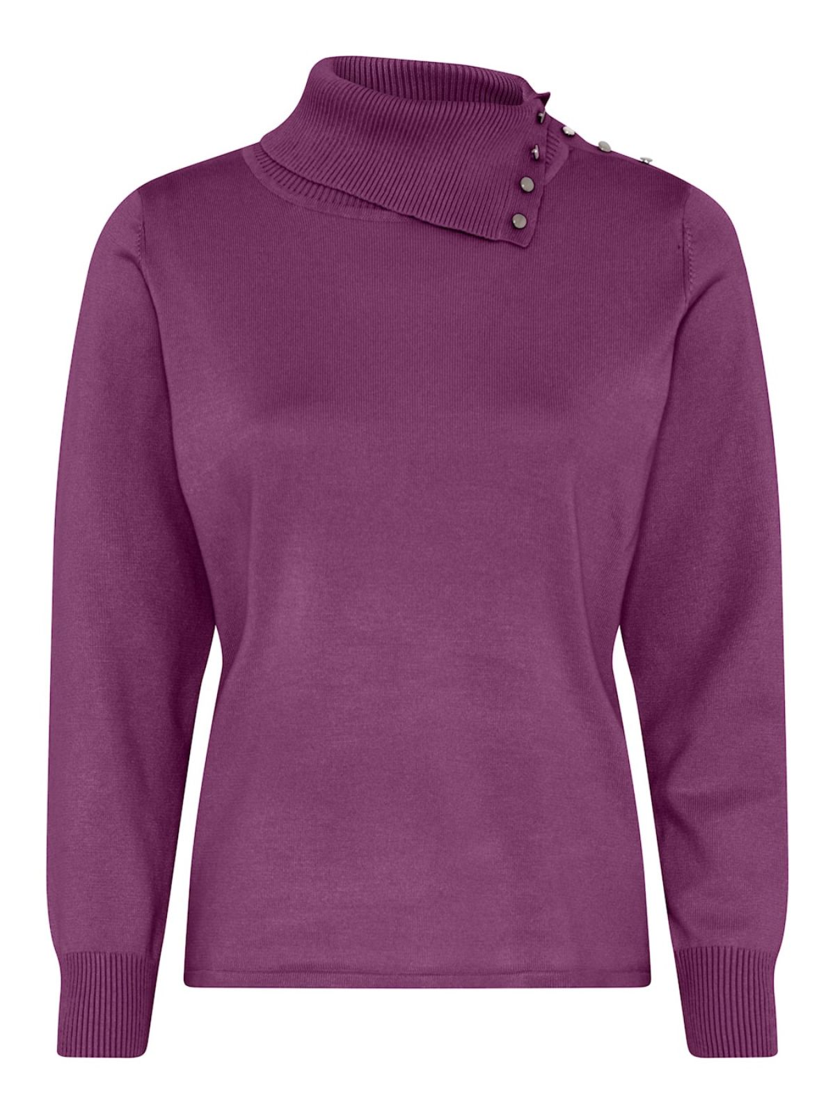 Elegant glat strik fra MICHA med asymmetrisk delt høj krave med knapeffekt. Strikken har et klassisk snit samt lange ærmer med bred rib samt lige kant forneden.Længde: ca. 60 cm