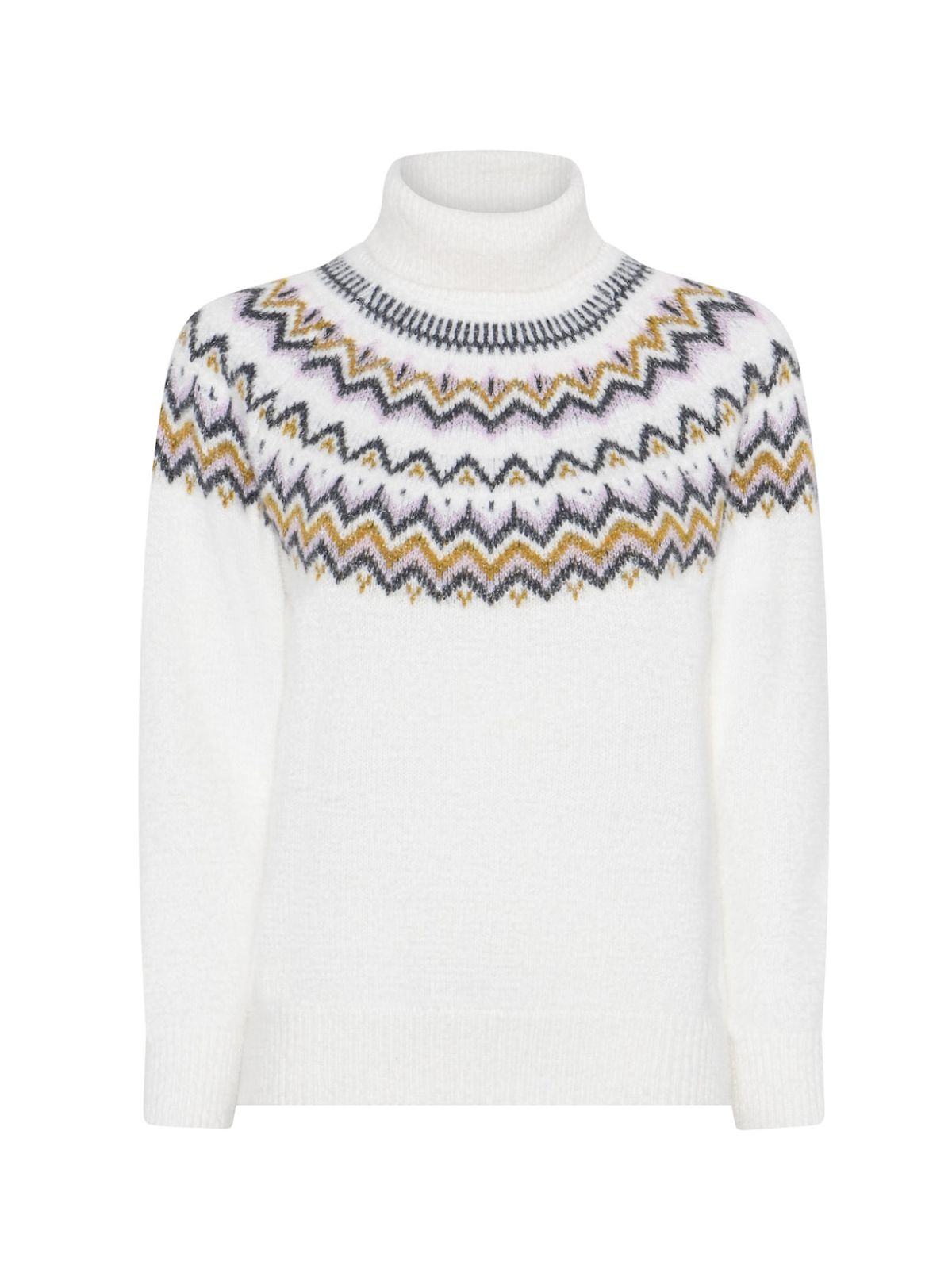 Strik med flotte detaljer fra Micha. Strikken har en høj hals, lange ærmer og fine detaljer på øverste del. Den har et afslappet til regulært fit.Materiale: 70% Polyamid, 15% Polyester, 10% Akryl, 5% Alpaka
