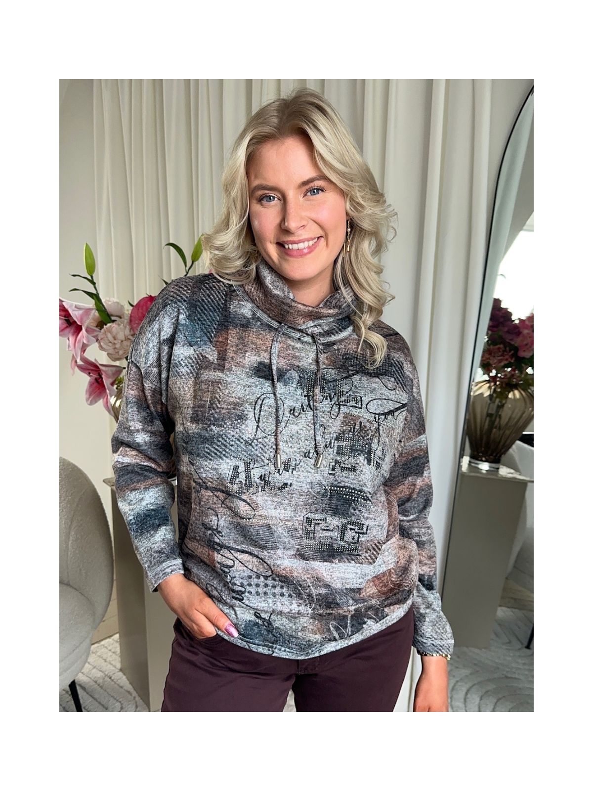Skøn bluse fra Textil Karntner. Blusen har en høj hals med bindebånd, lange ærmer og et regulært fit.Pasform: Regulær pasform