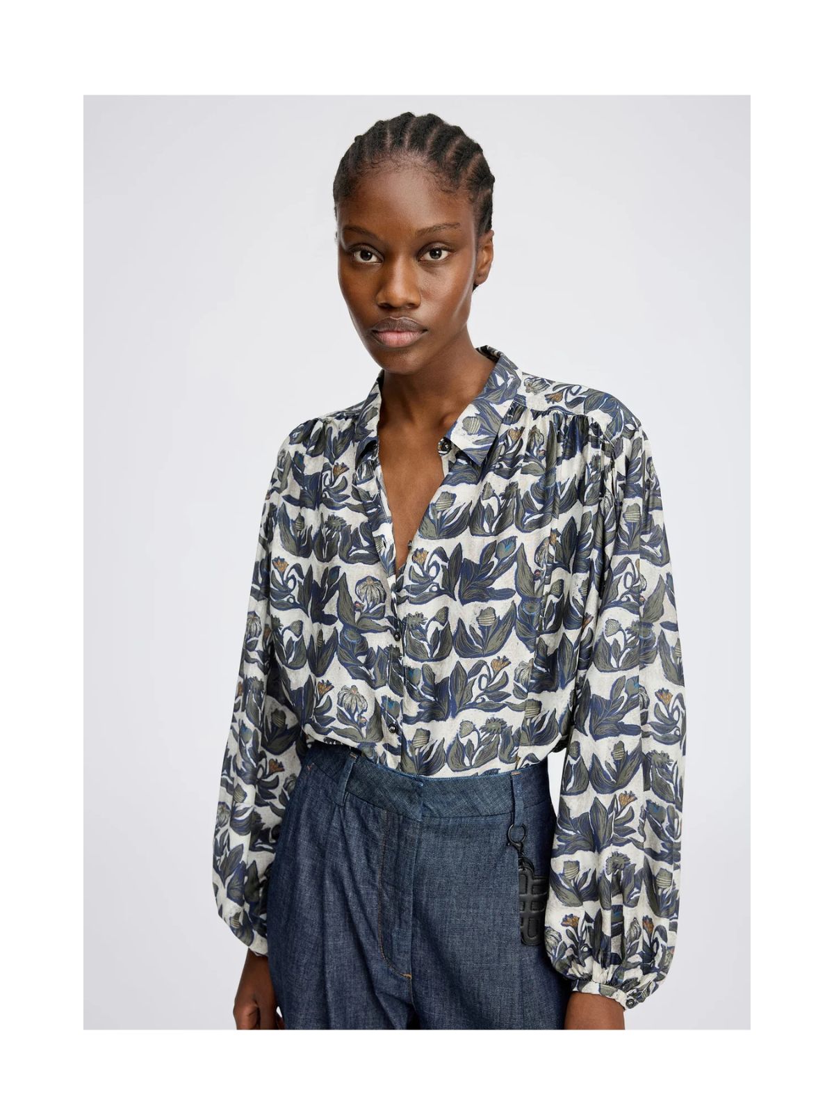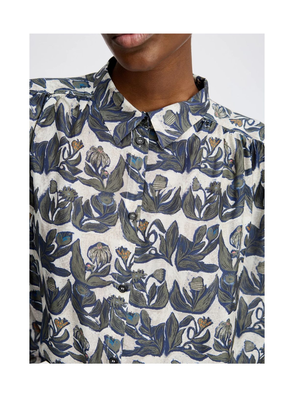 Fashionabel skjorte bluse fra MUNTHE med et smukt all-over print og elegante, brede, løse ærmer. Skjorten er designet med klassisk krave, lange ballon ærmer og en fin knaplukning. Smart til både buks eller nederdel.Pasform: Loose Fit